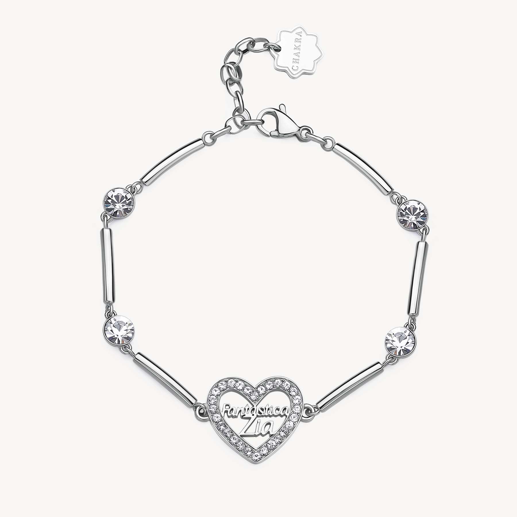 Halbstarres Armband aus 316L-Edelstahl mit herzförmiger Zentrale, "Fantastic Aunt" Auschrift und Kristallen.
