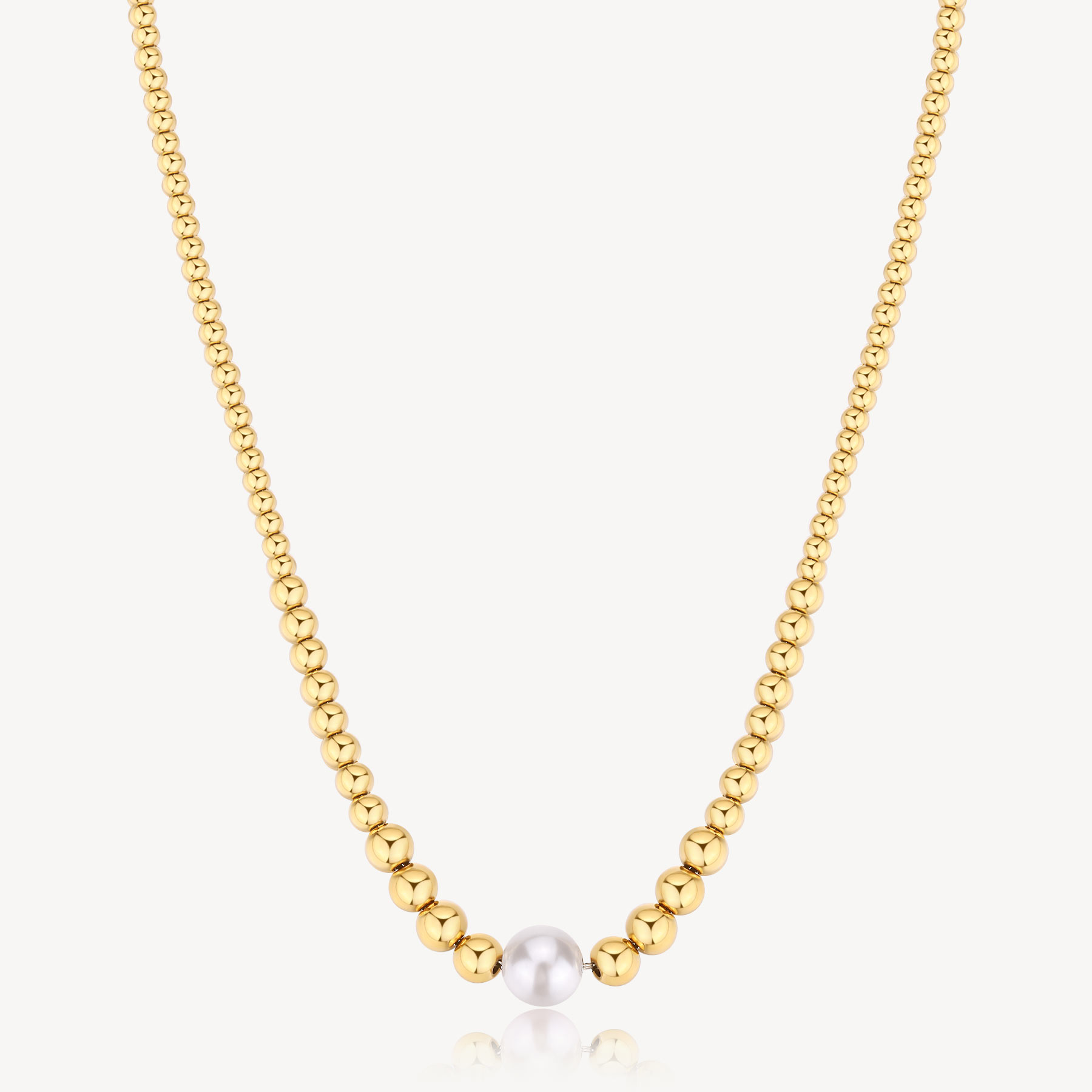 Kugelhalskette aus 316L-Edelstahl, 14K-vergoldeter-PVD-Beschichtung mit Muschelperle.