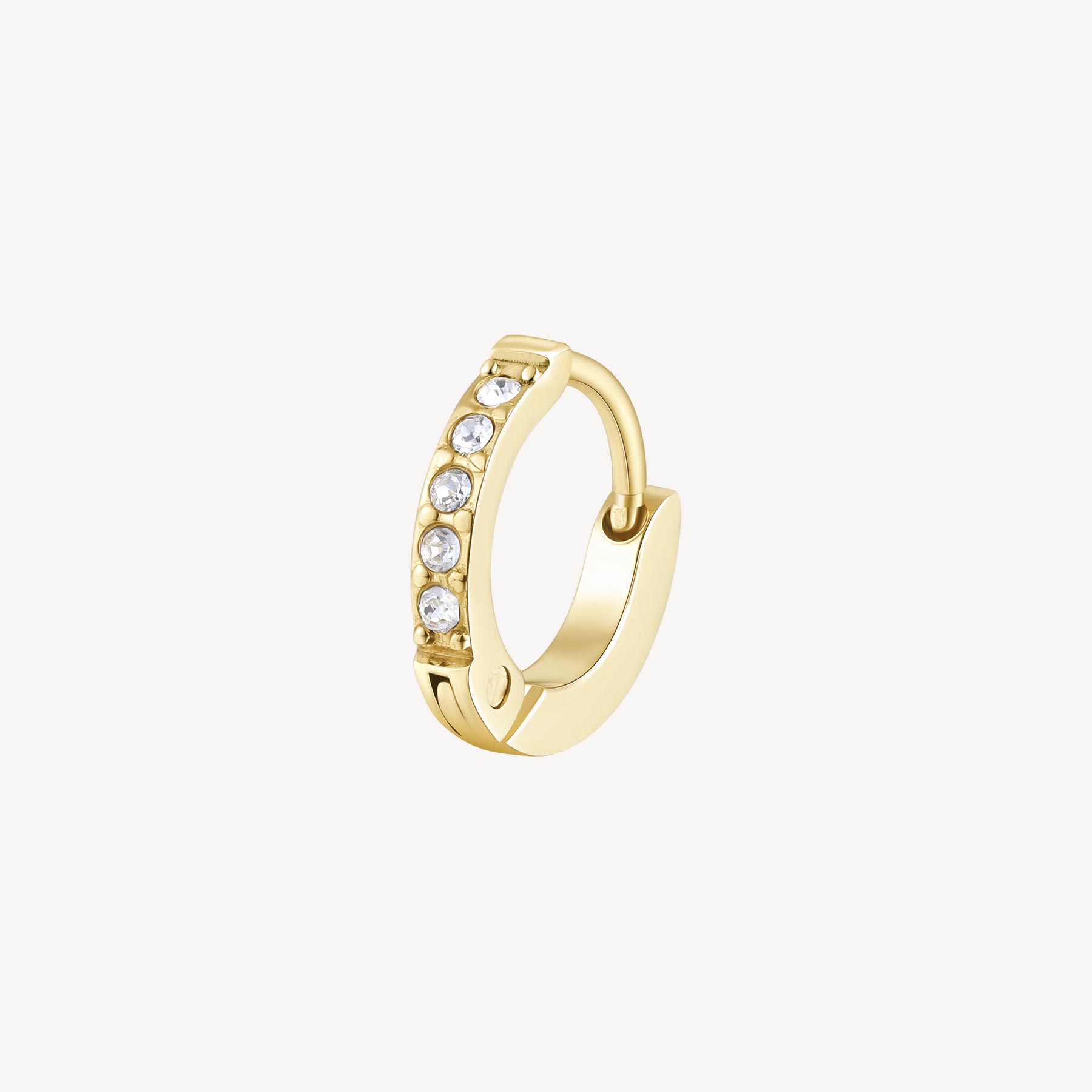 Einzelner Ohrring aus 316L-Edelstahl und 14K-vergoldeter-PVD-Beschichtung mit klarem Kristall.