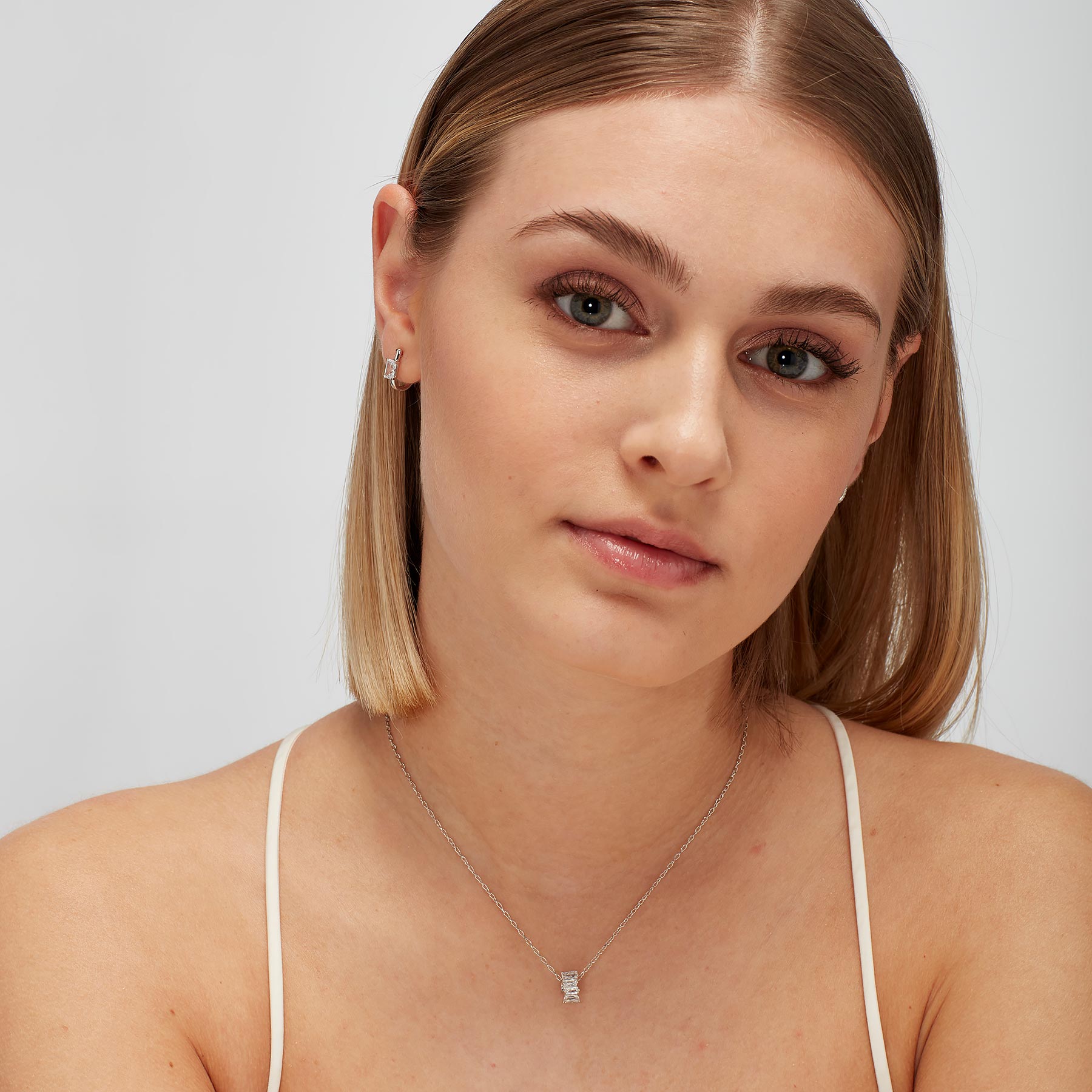 U-Form Einzelner Ohrring aus 925‰ rhodiniertem Silber mit baguette kubischen Zirkonia.