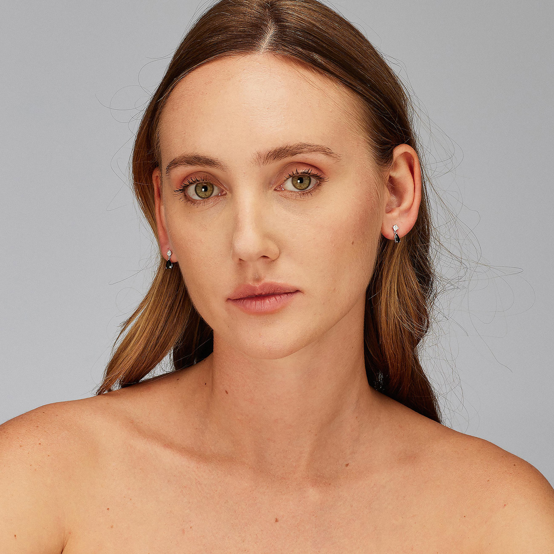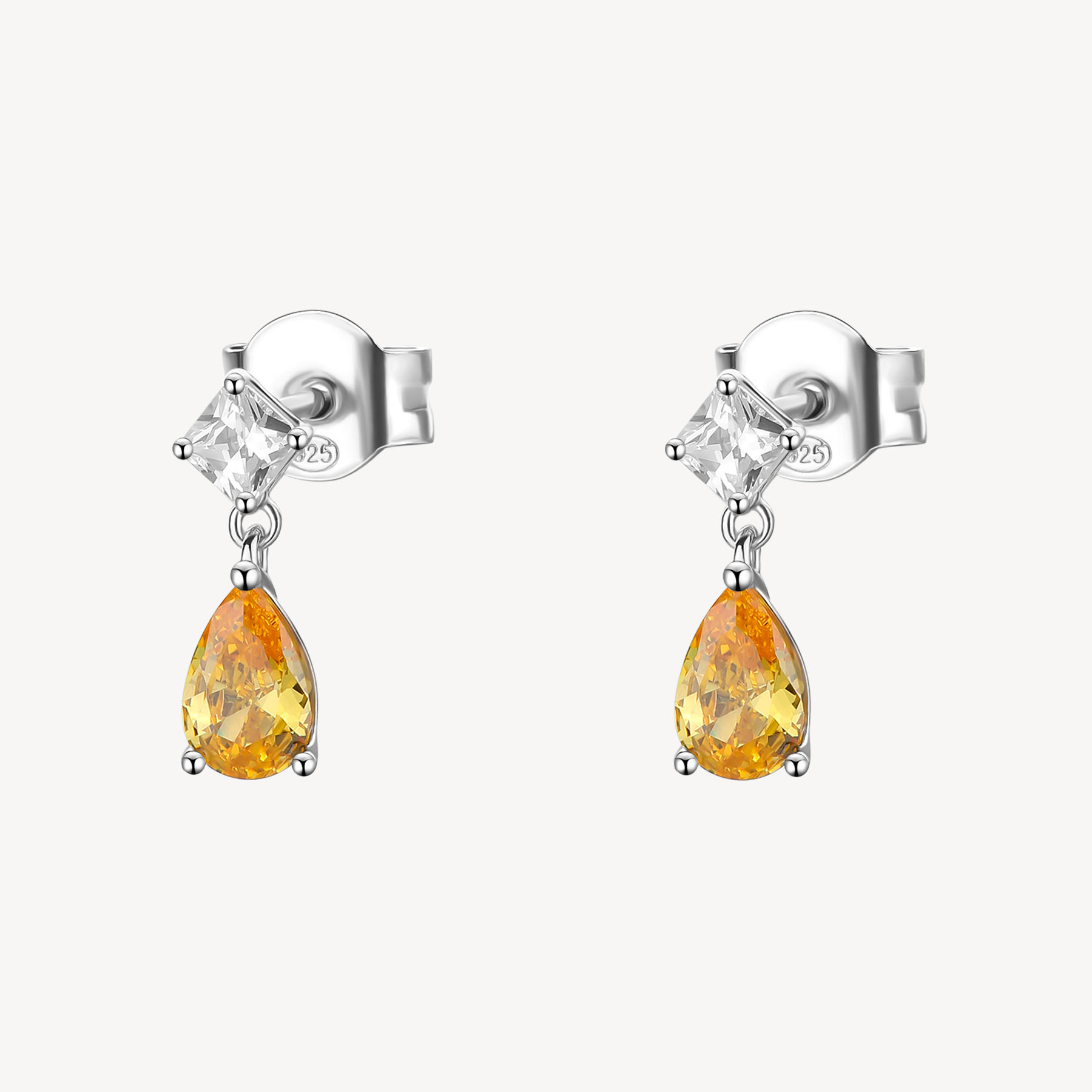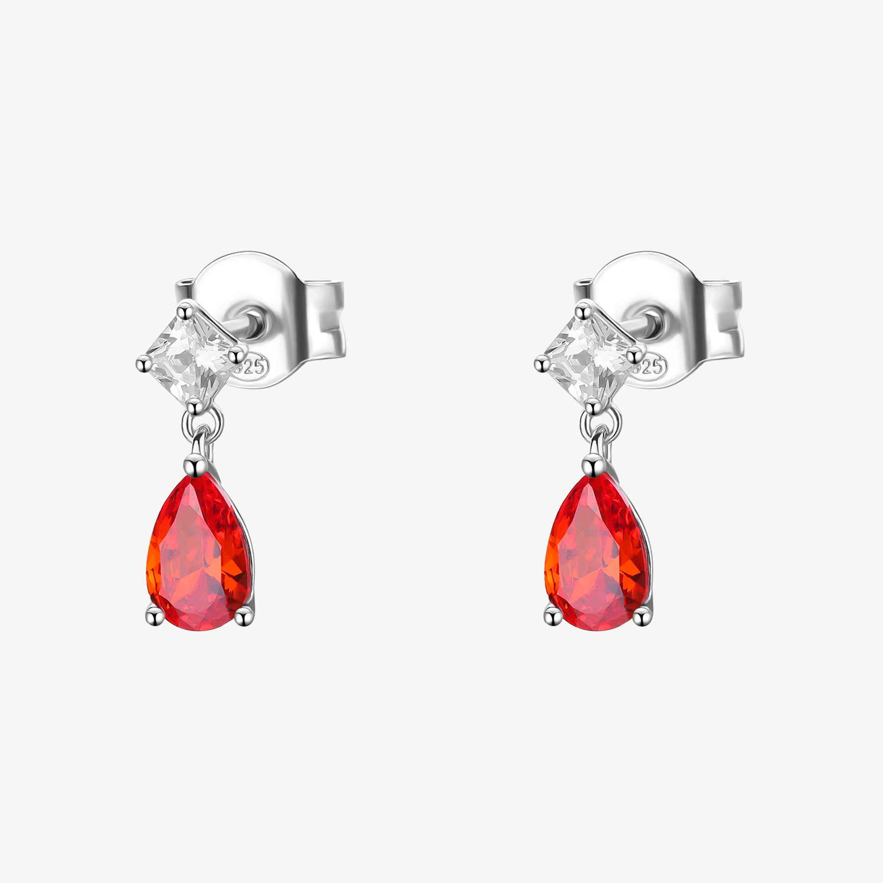 Ohrgehängen aus 925‰ rhodiniertem Silber mit klarem square kubischem Zirkonia und schwarzem pear kubischen Zirkonia.