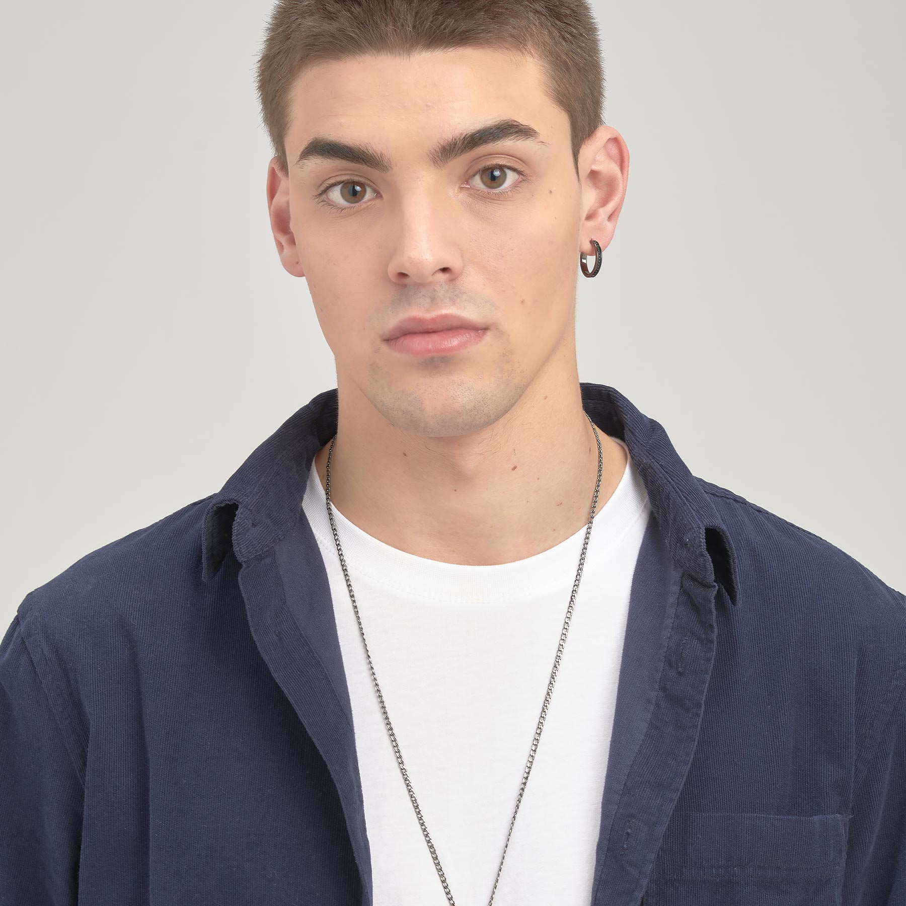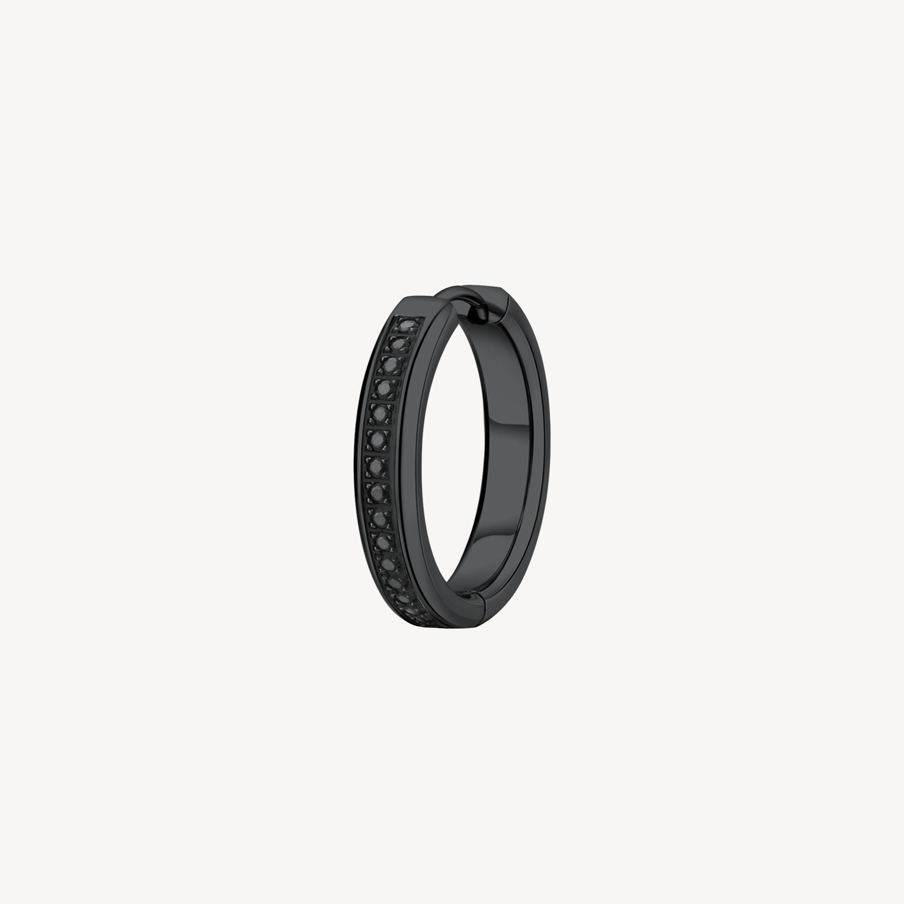 316L stainless steel single circle earring and ruthenium color pvd coating with black cubic zirconia.