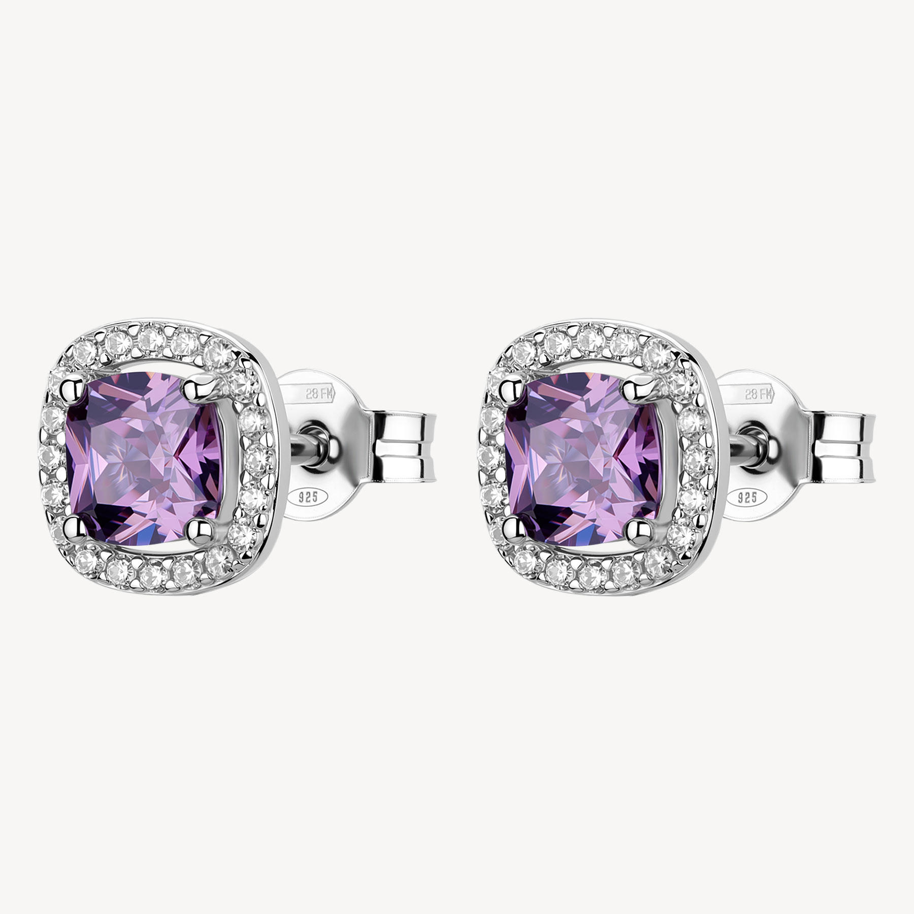 925‰ rhodium-plated sterling silver stud earrings with clear cubic zirconia.