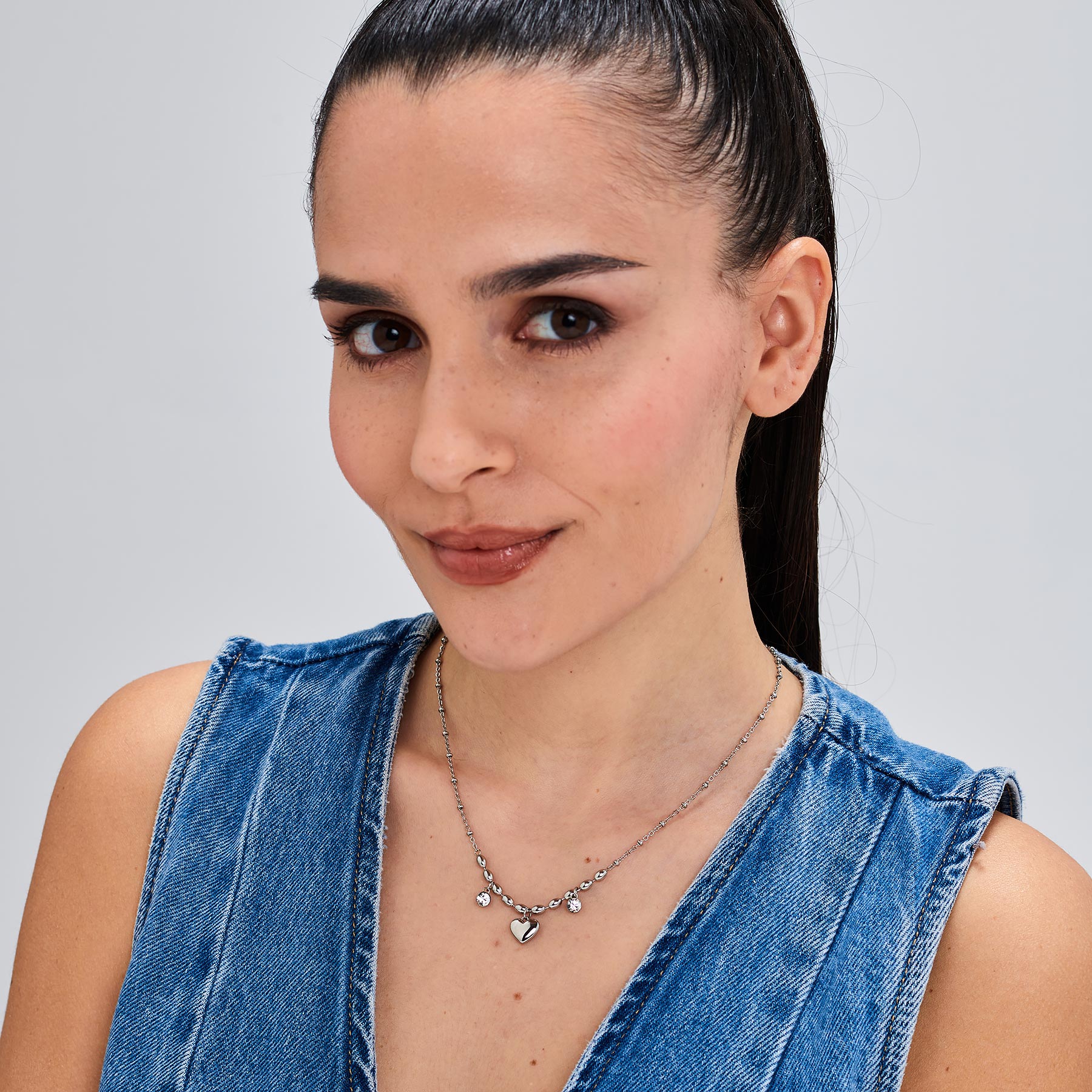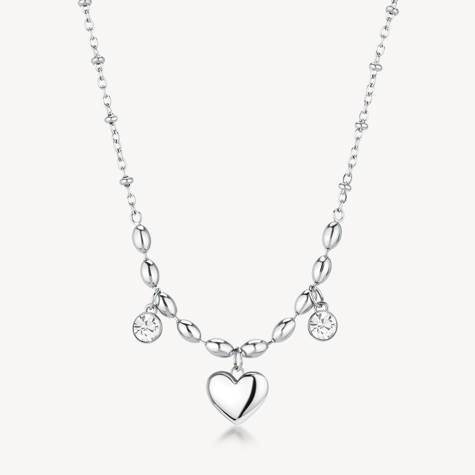 316L stainless steel necklace with a choker design and pendants featuring a heart and crystals.