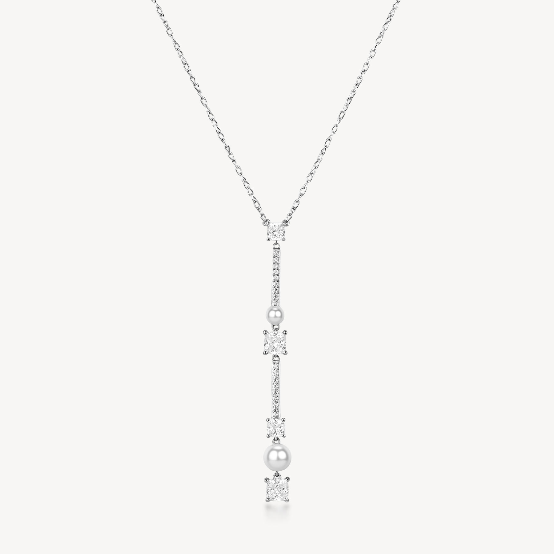 925‰ rhodium-plated sterling silver choker necklace with shell pearls and clear cubic zirconia.
