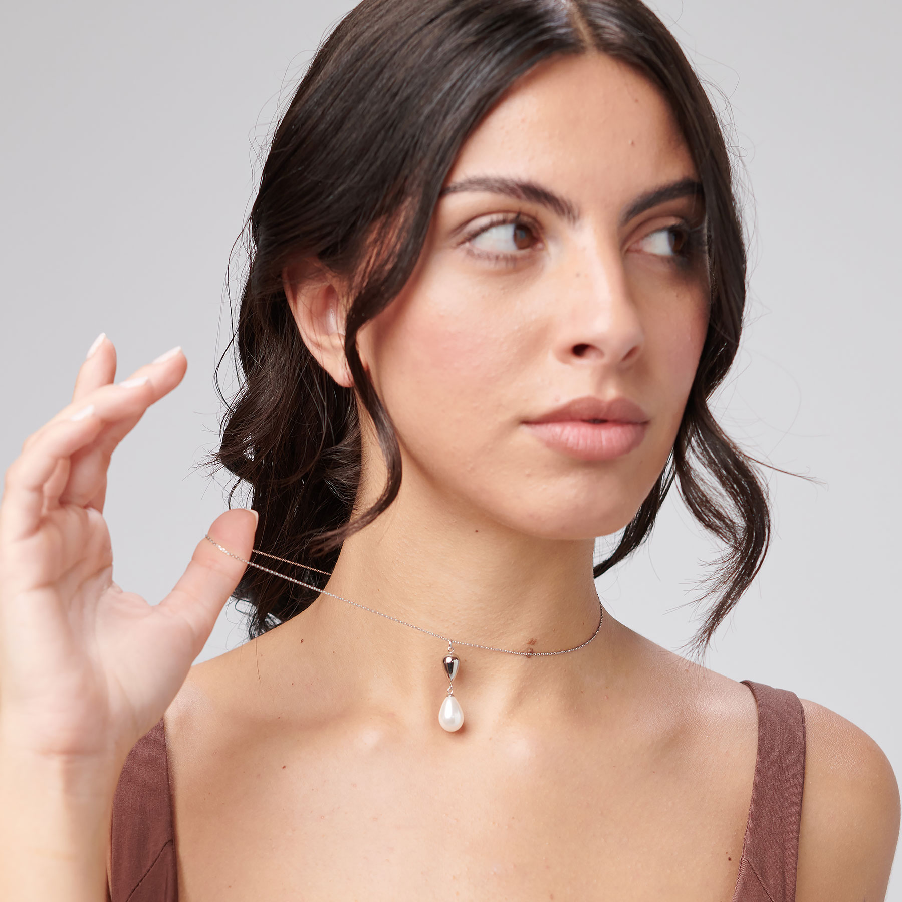 316L stainless steel choker necklace with a shell pearl and drop pendant.