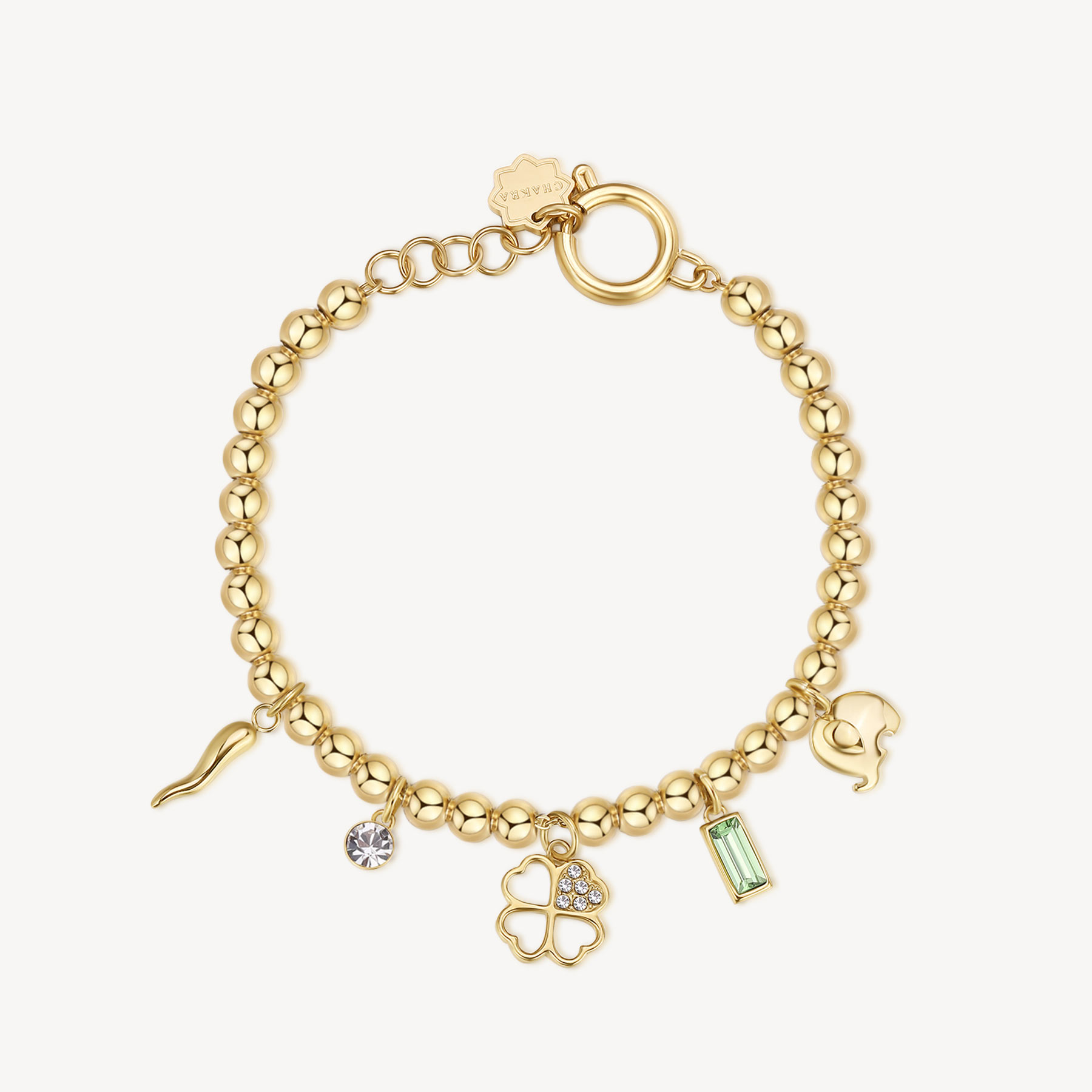 316L stainless steel bracelet and 14k gold pvd coating with four-leaf clover, crystal crystals and peridot