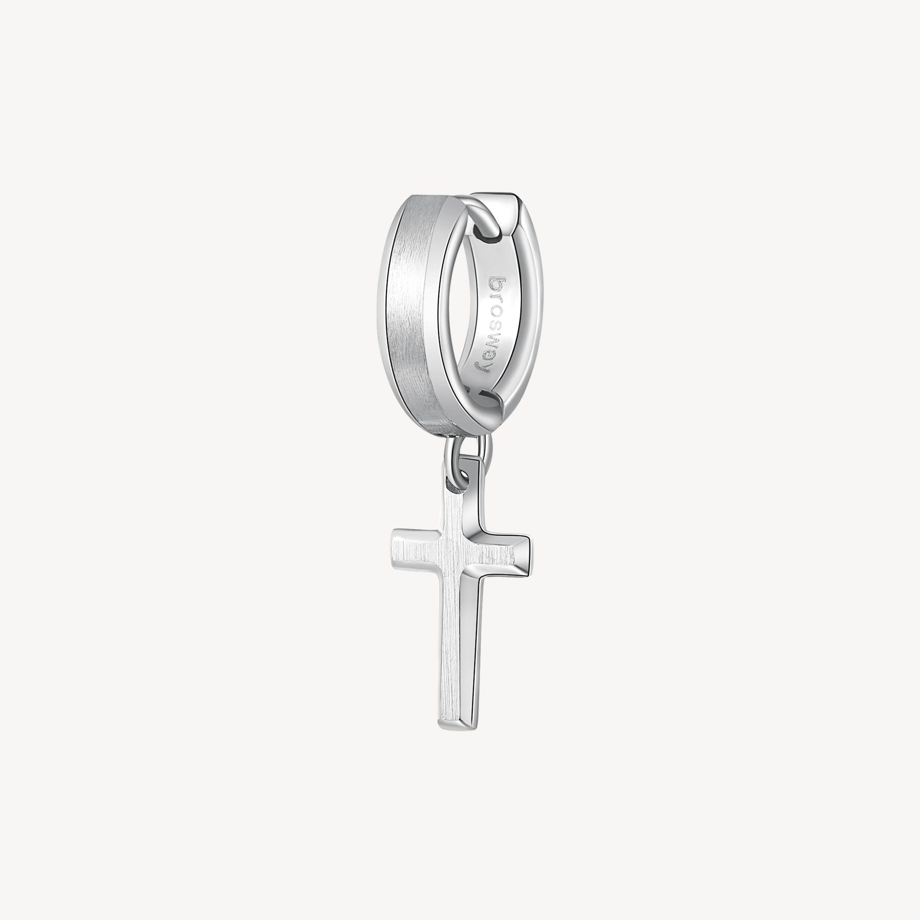 316L stainless steel single circle earring with cross shaped pendant.