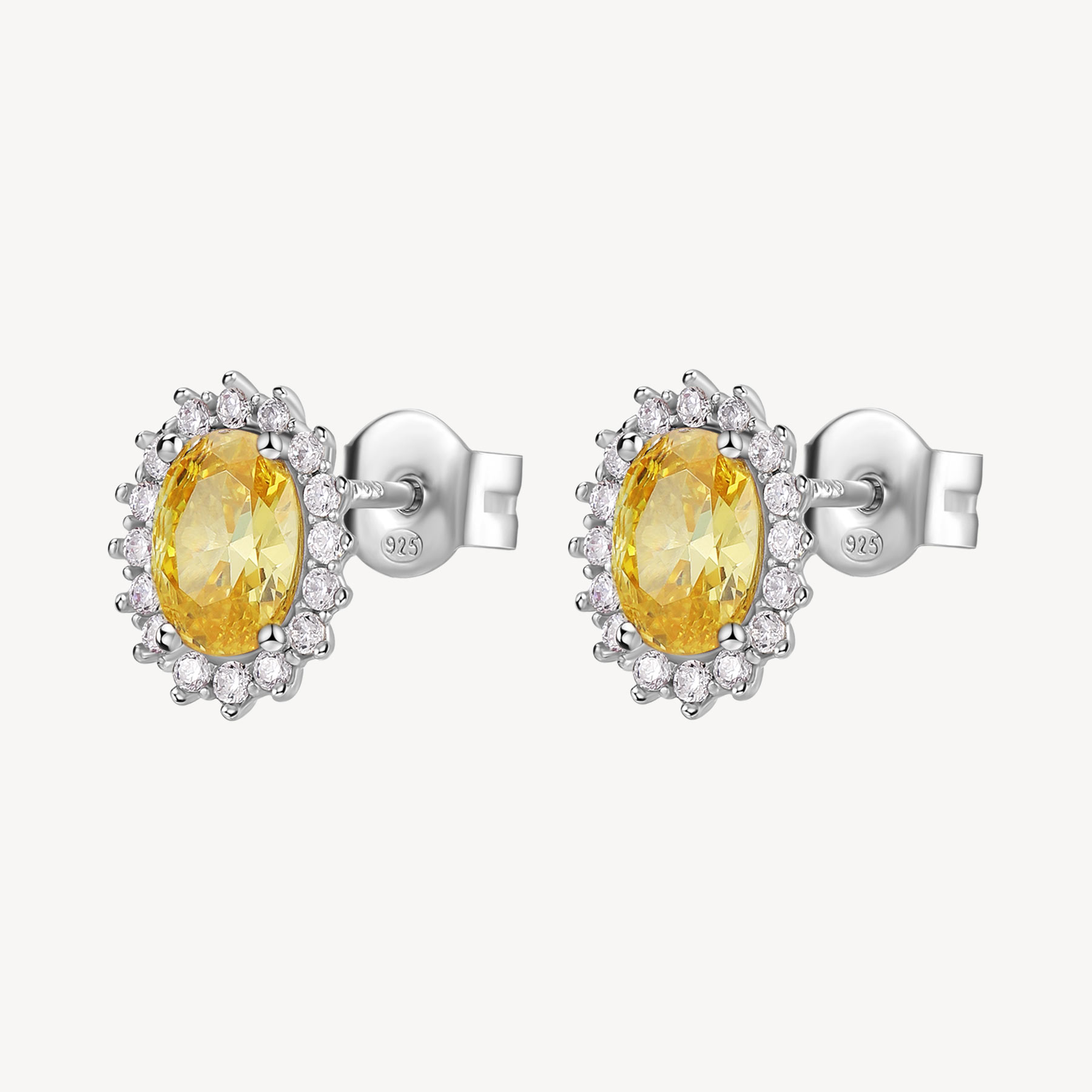 925‰ rhodium-plated sterling silver Kate earrings with clear oval cubic zirconia.