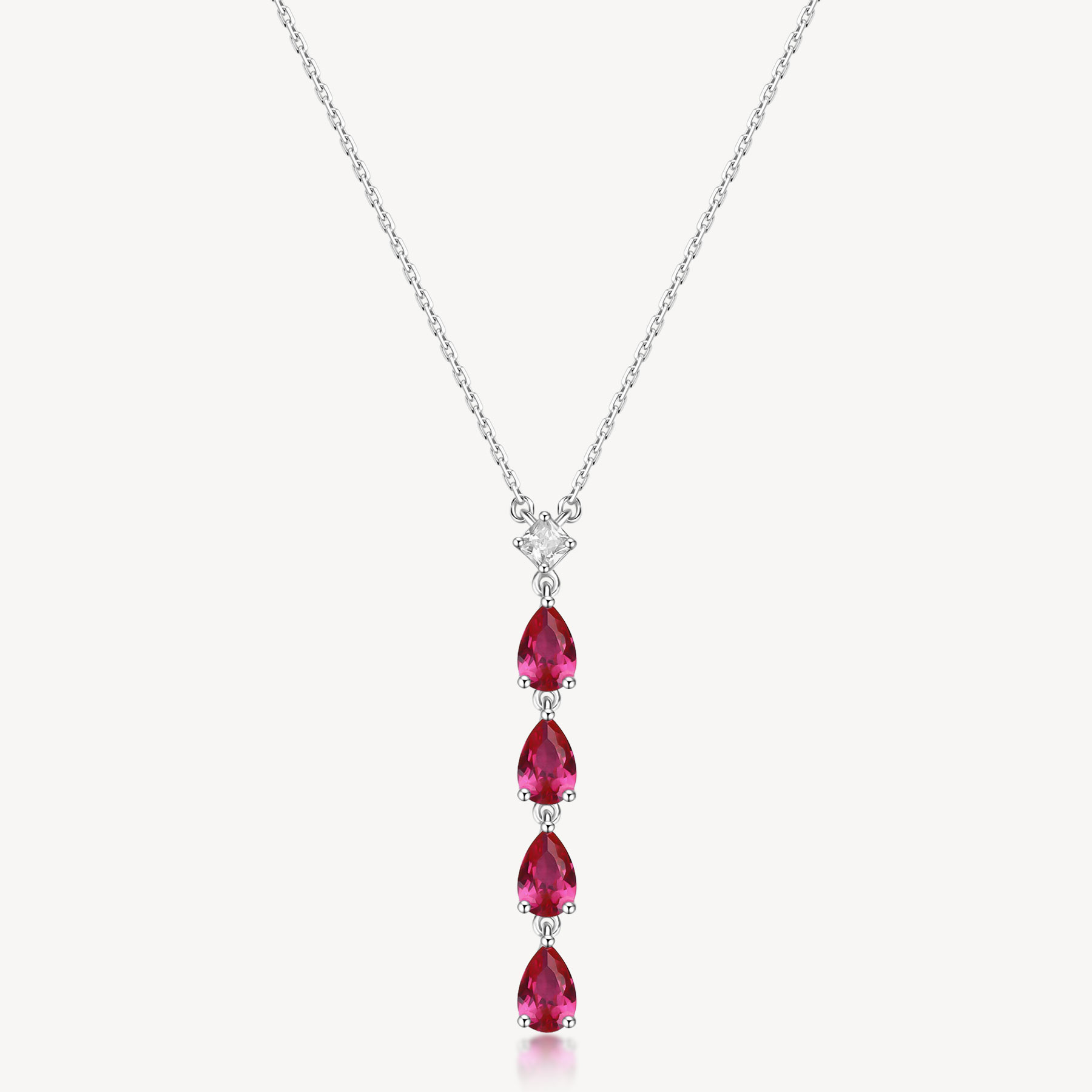925‰ rhodium-plated sterling silver necklace and pendant with clear square cubic zirconia and sapphire color pear cubic zirconia.