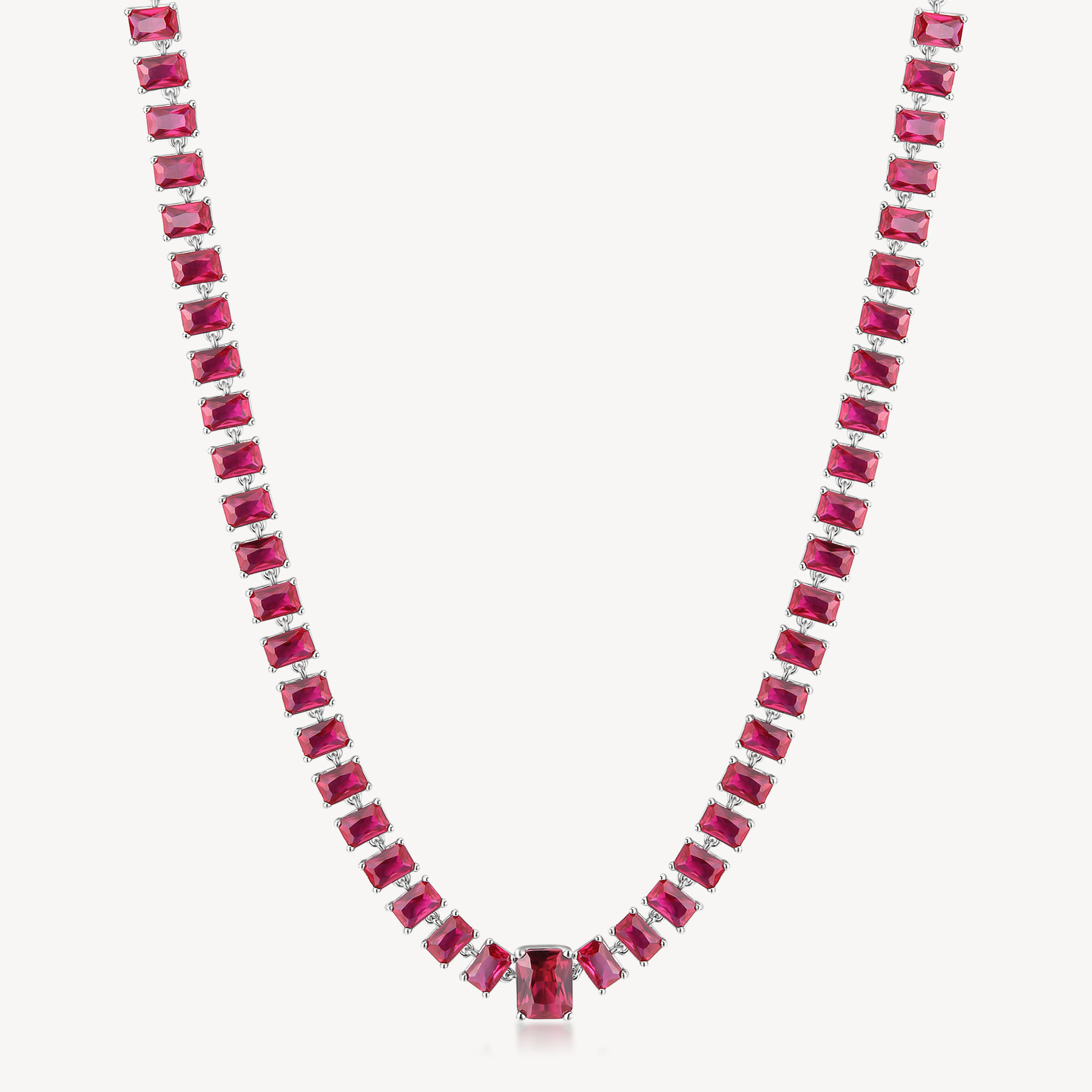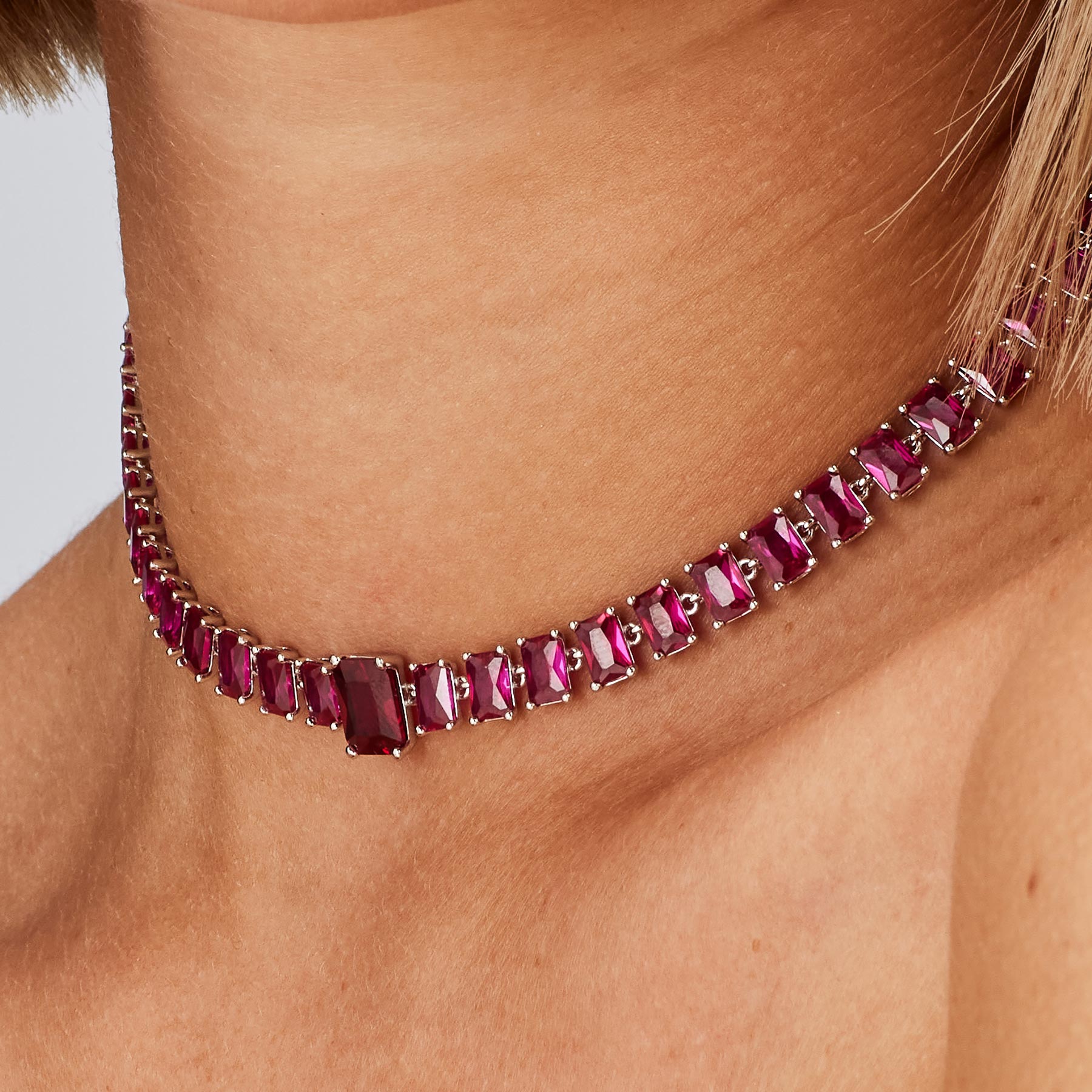 925‰ rhodium-plated sterling silver choker with ruby color cushion cubic zirconia.