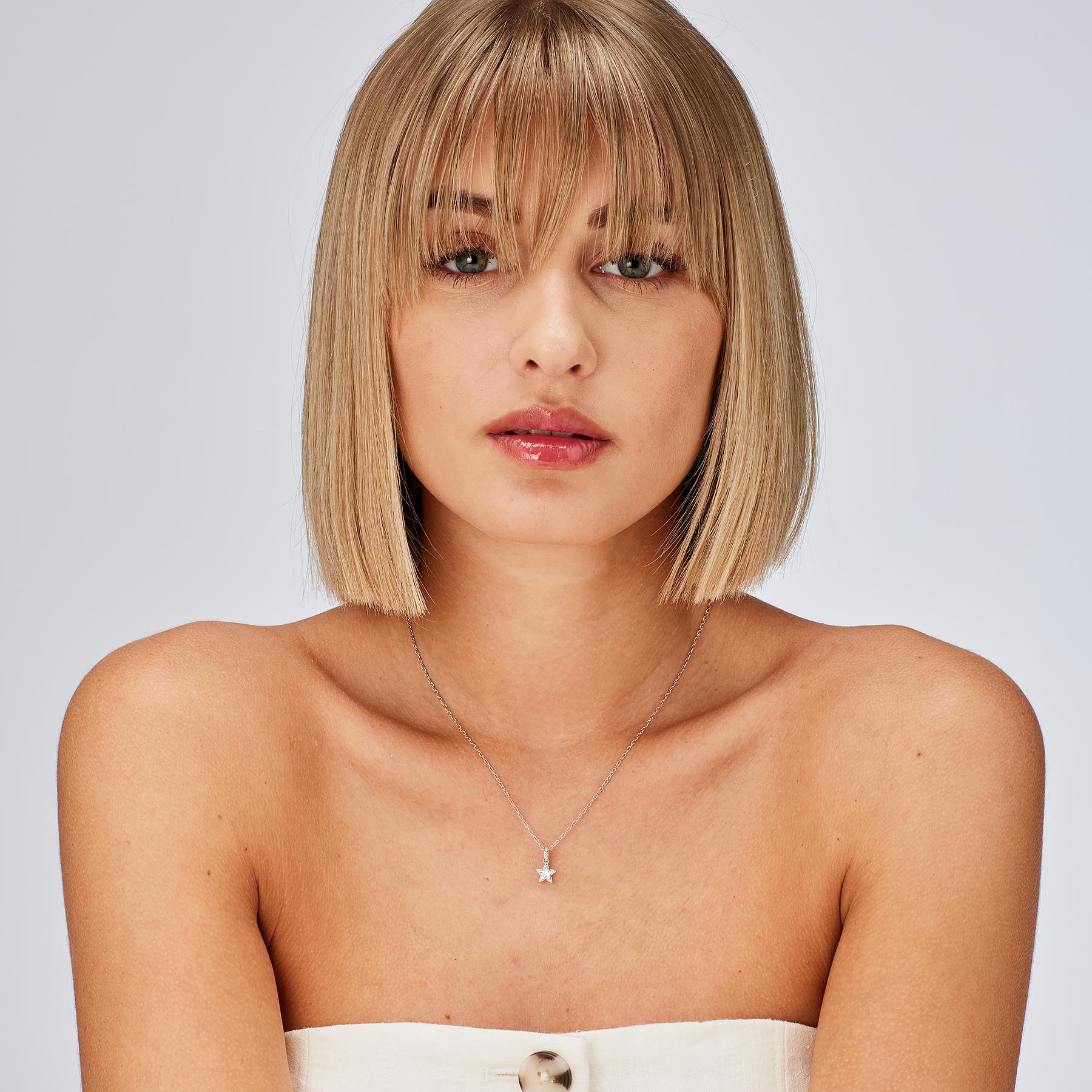 Charm de plata rodinada 925‰ en forma de estrella con circonitas cúbicas.