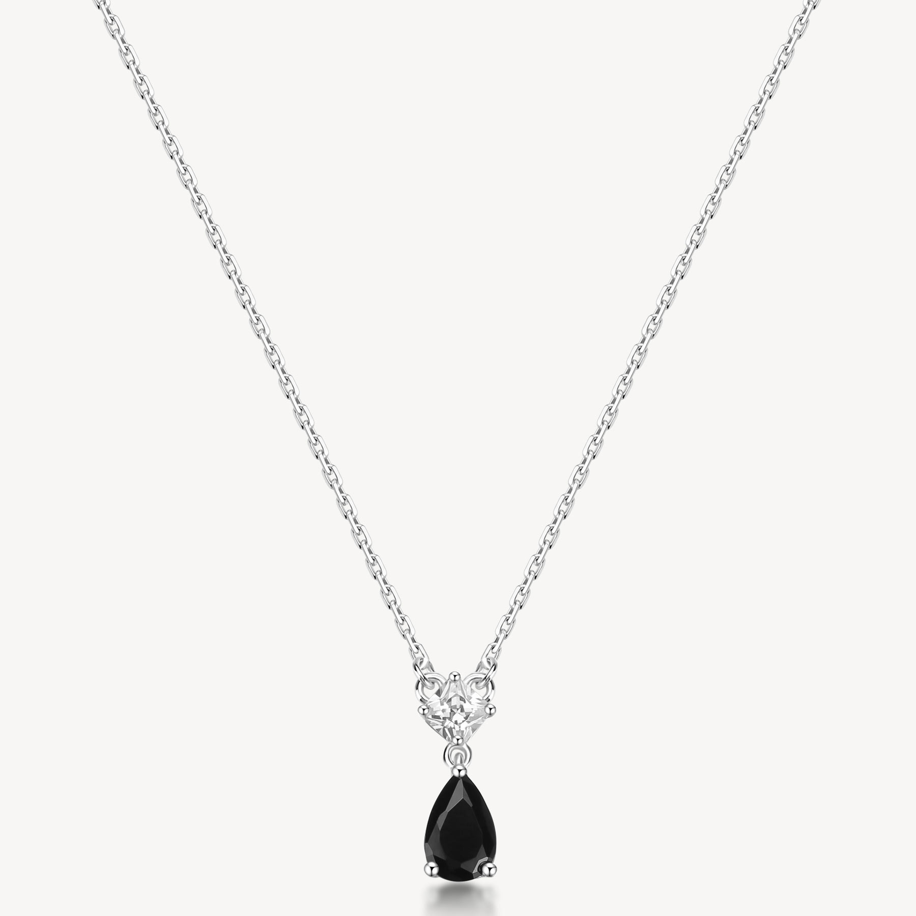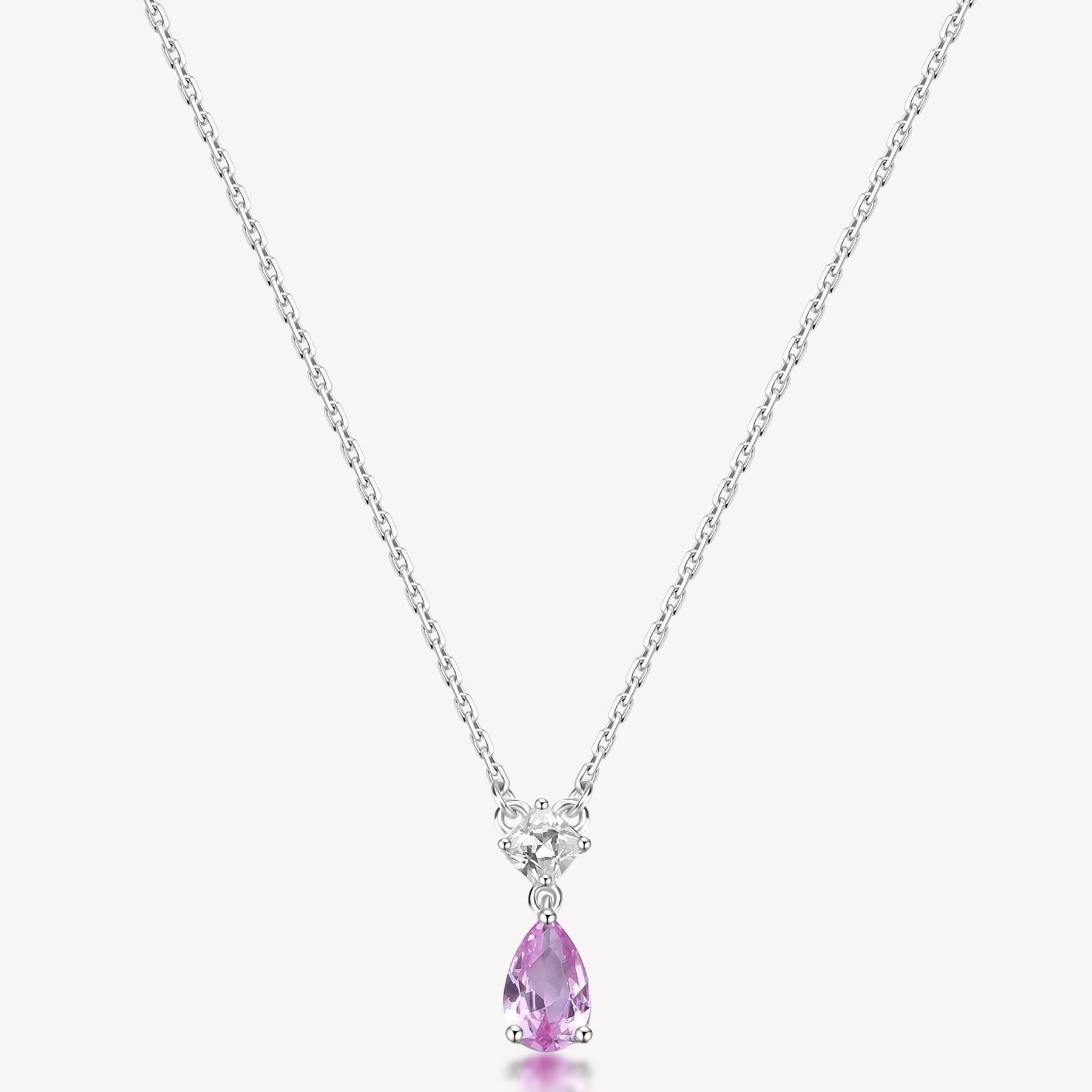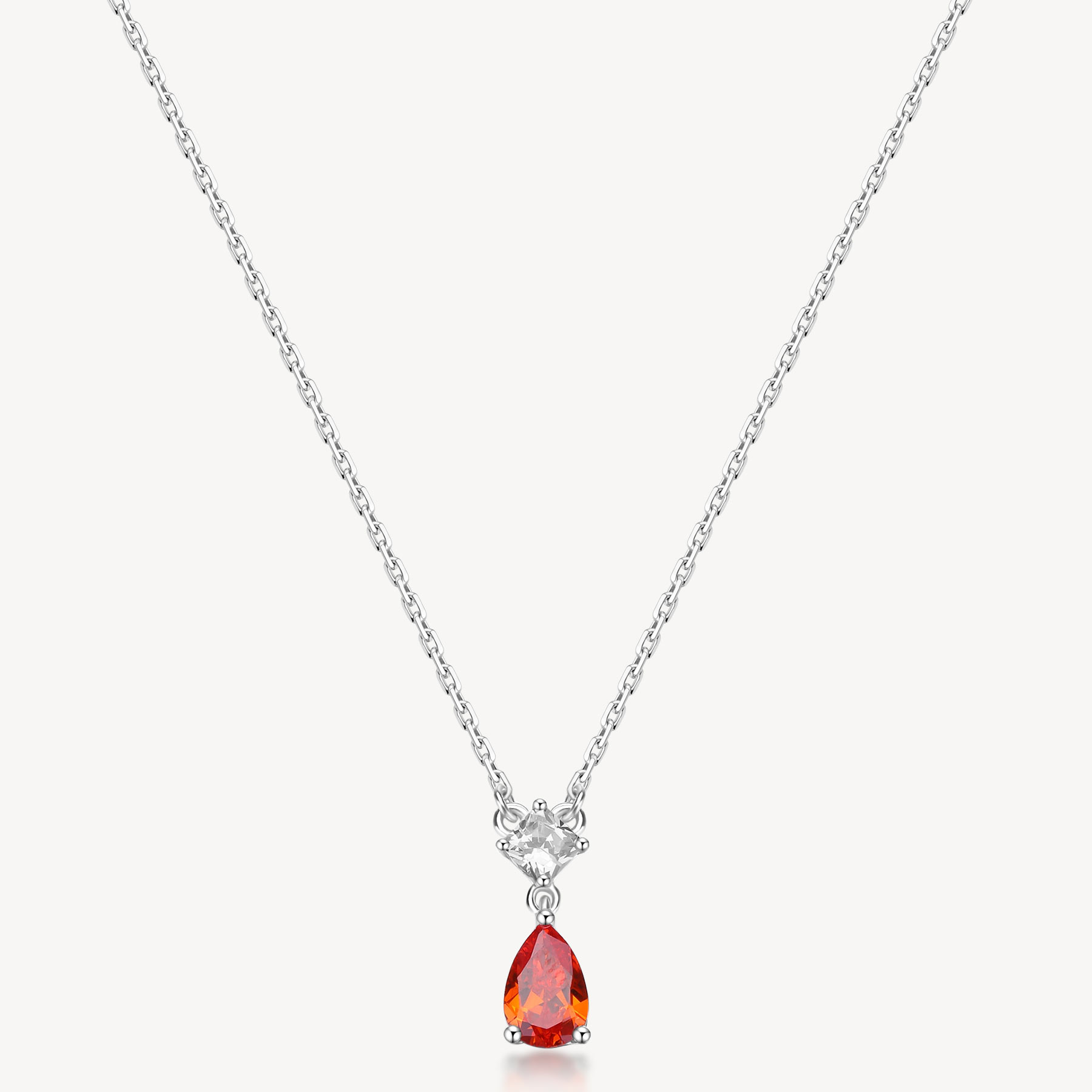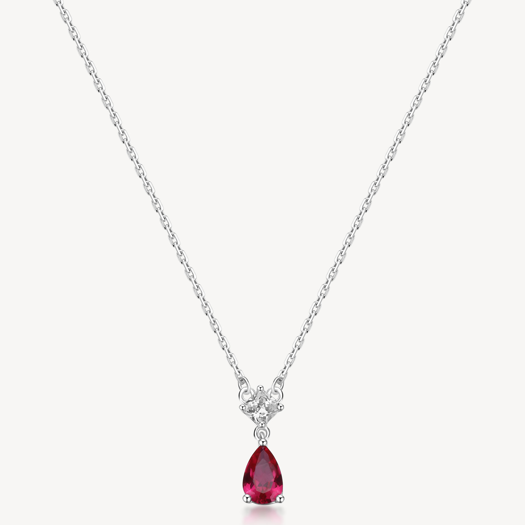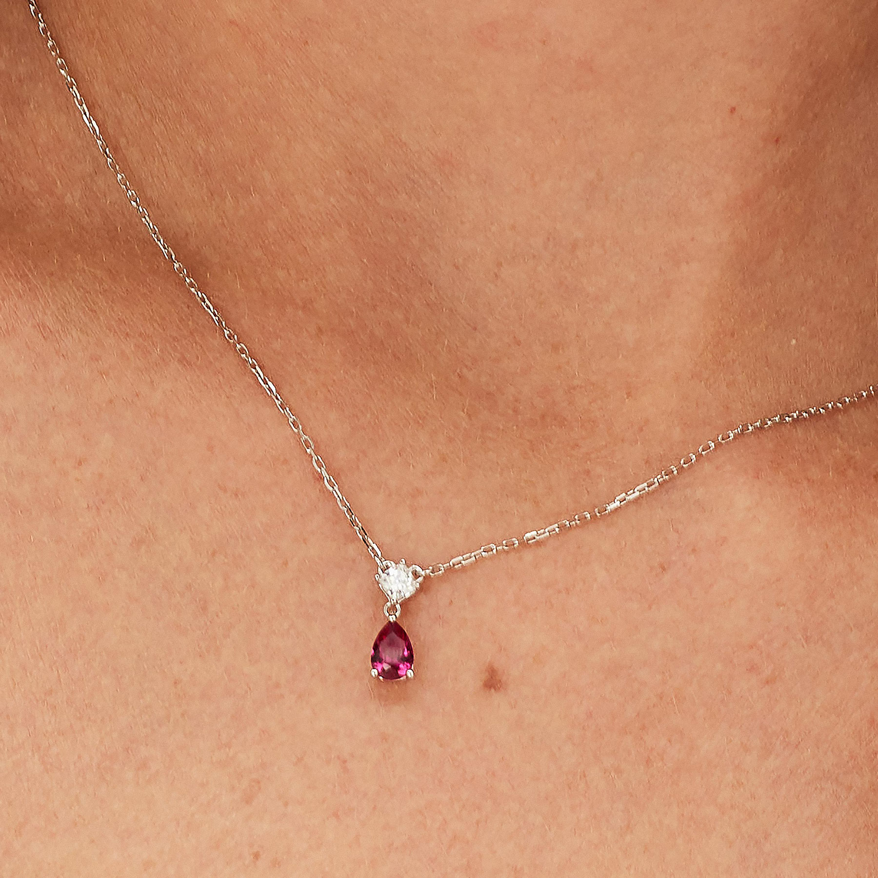 Collar de gargantilla en plata rodiada 925‰ y colgante con square circonita cúbica transparente y pear circonita cúbica color ruby.
