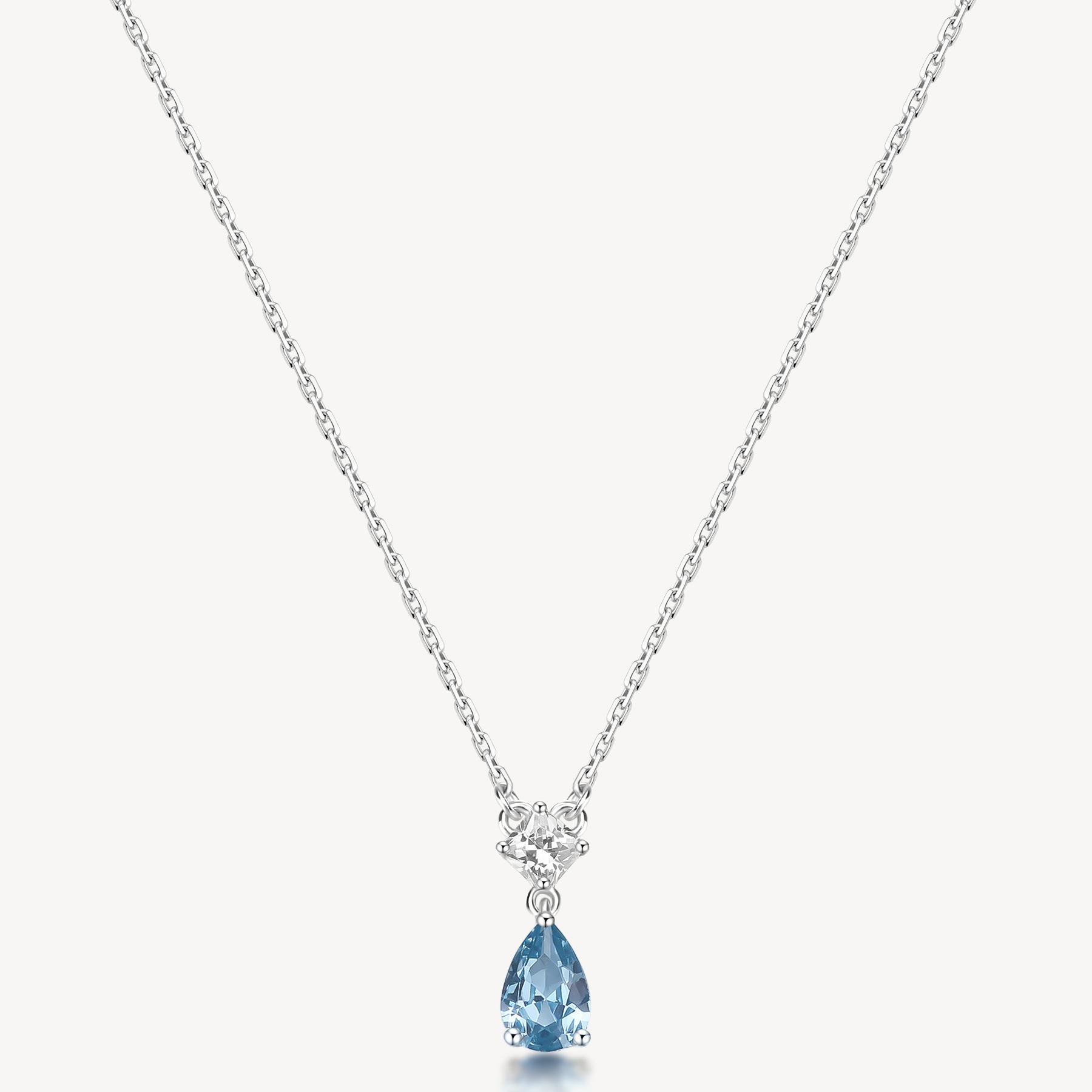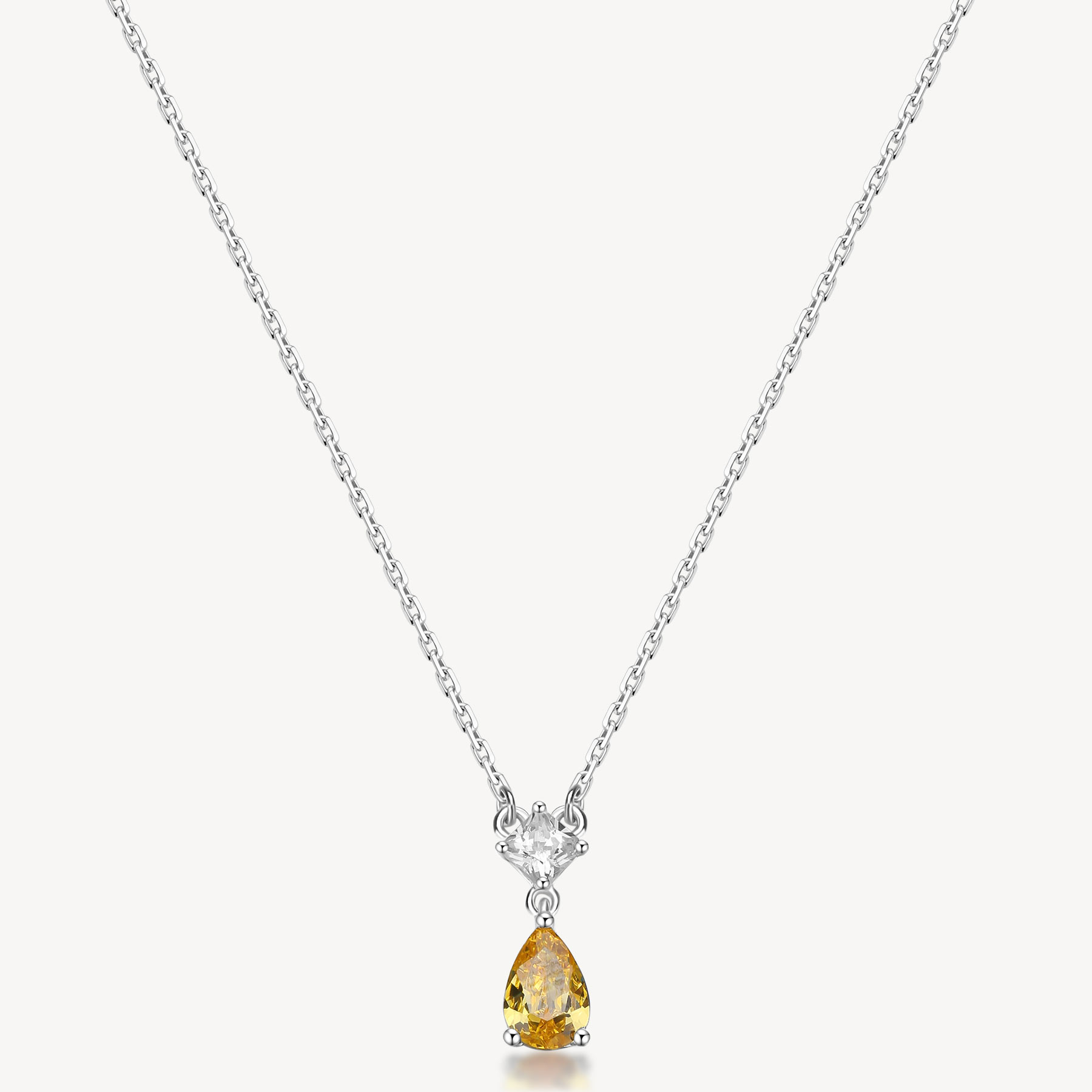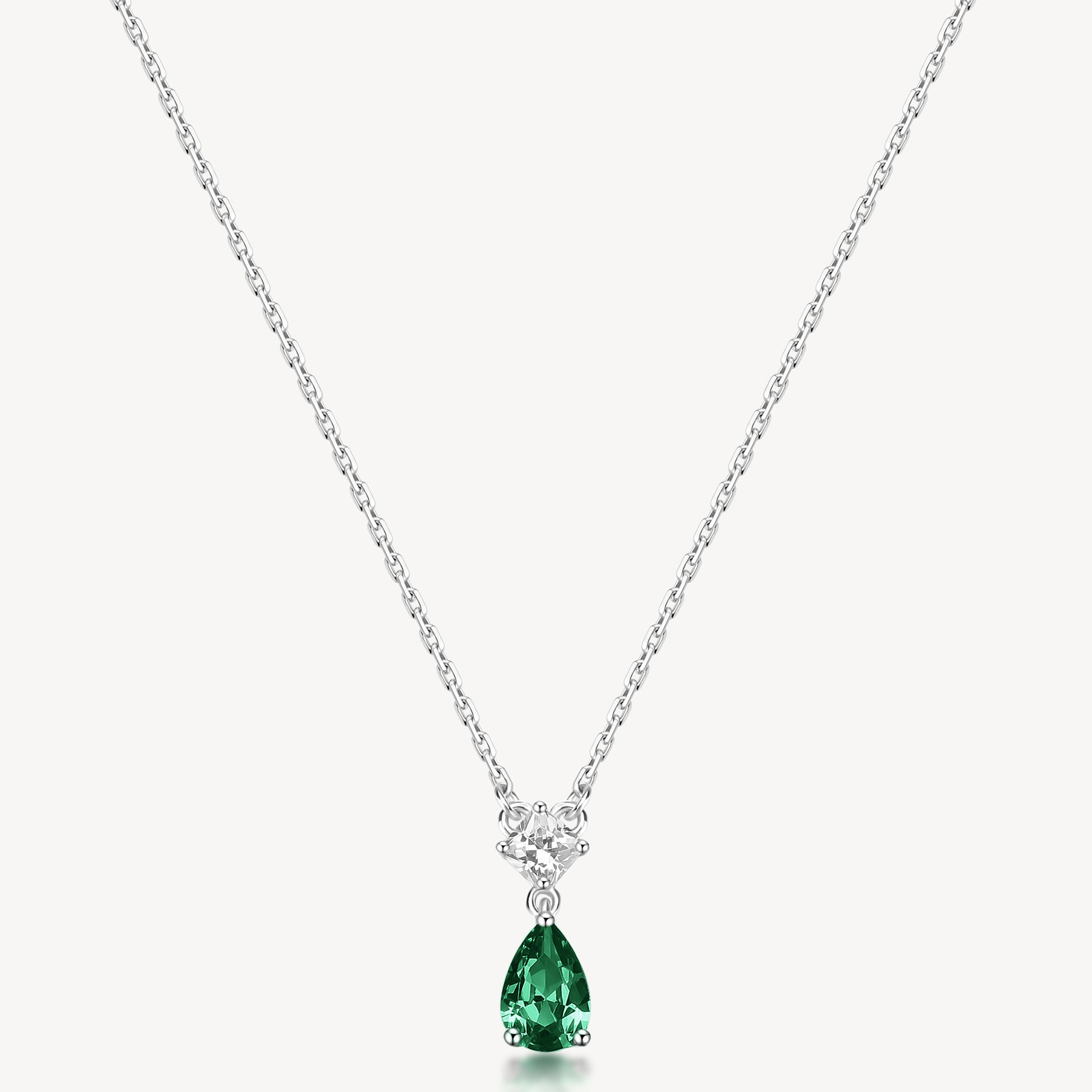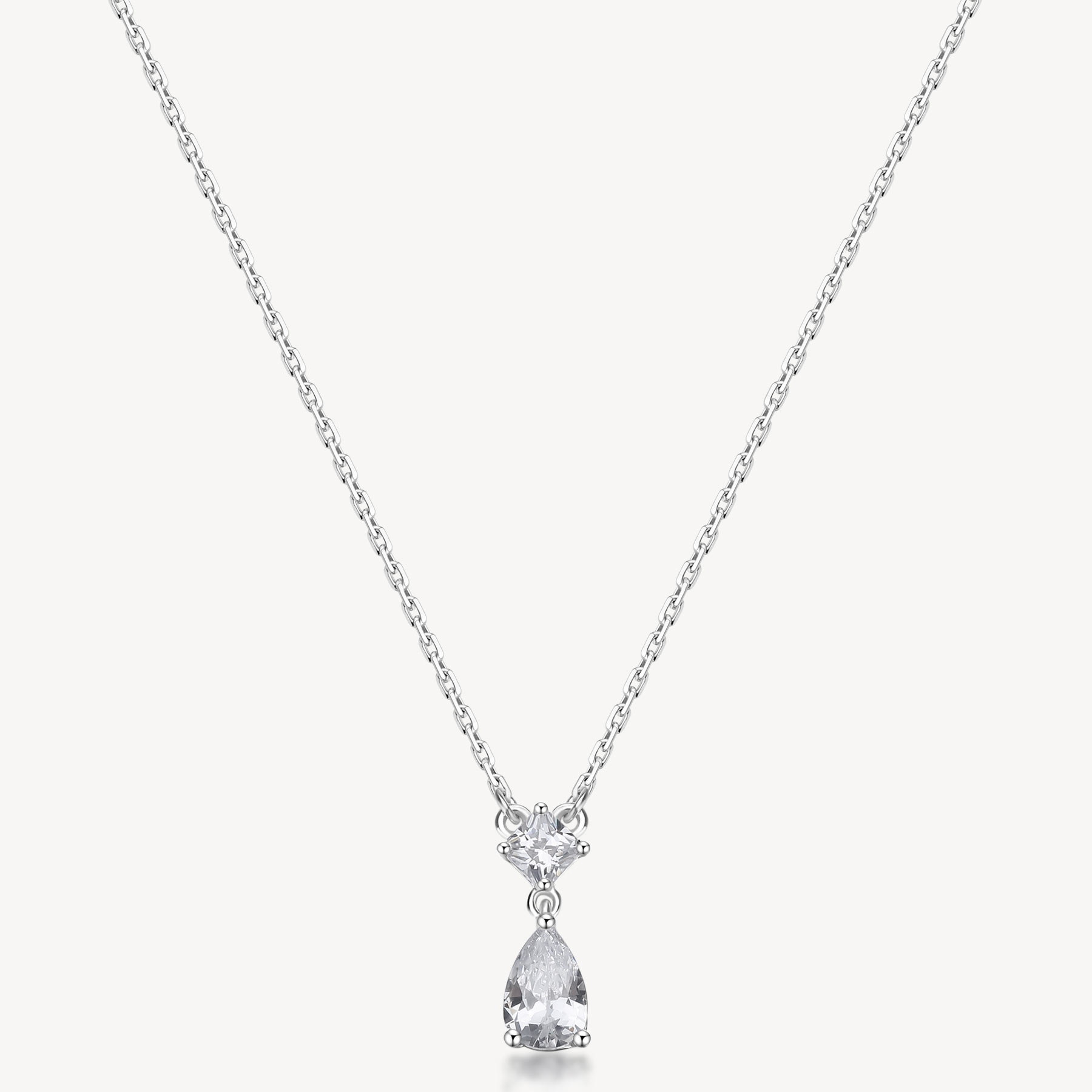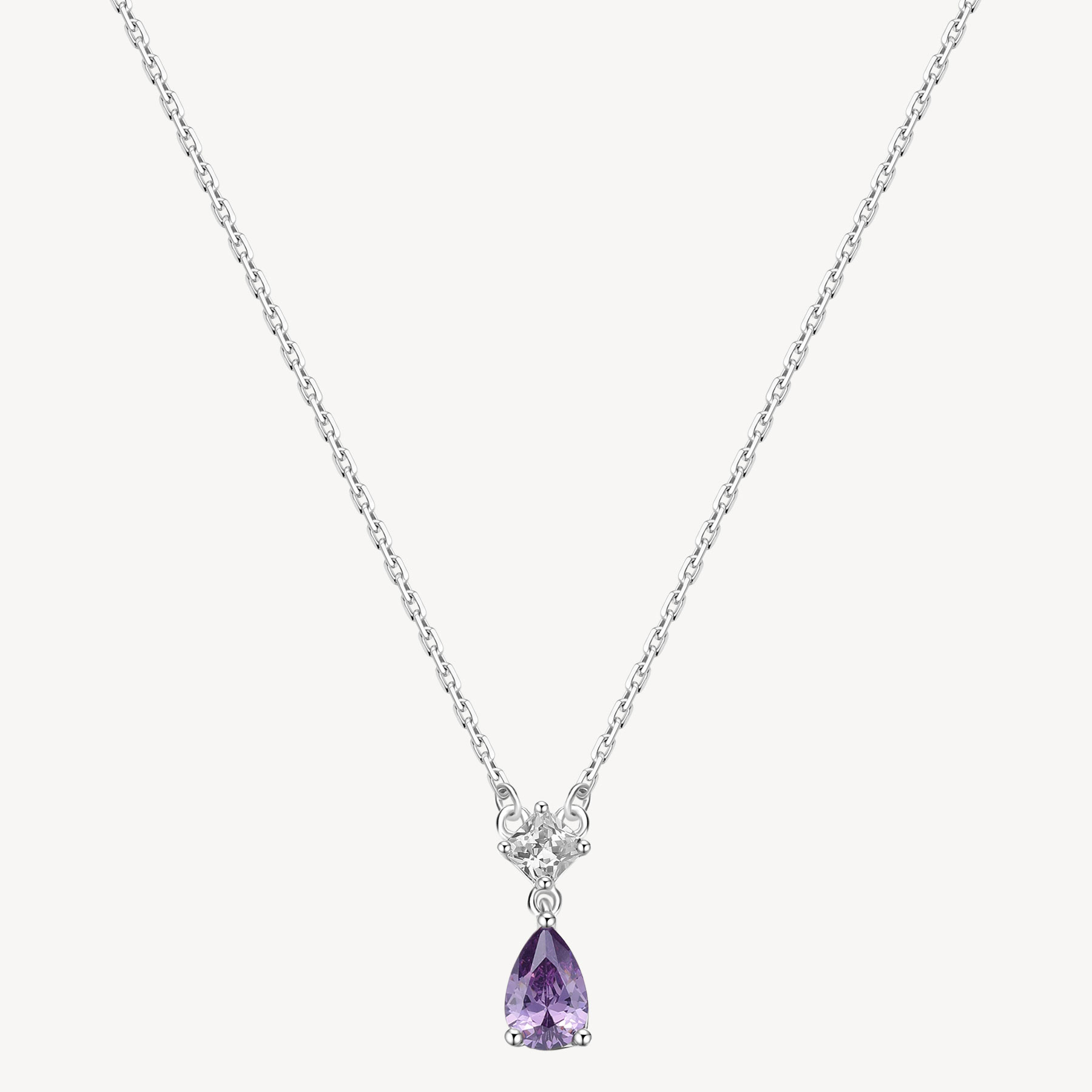 Collar de gargantilla en plata rodiada 925‰ y colgante con square circonita cúbica transparente y pear circonita cúbica color ruby.