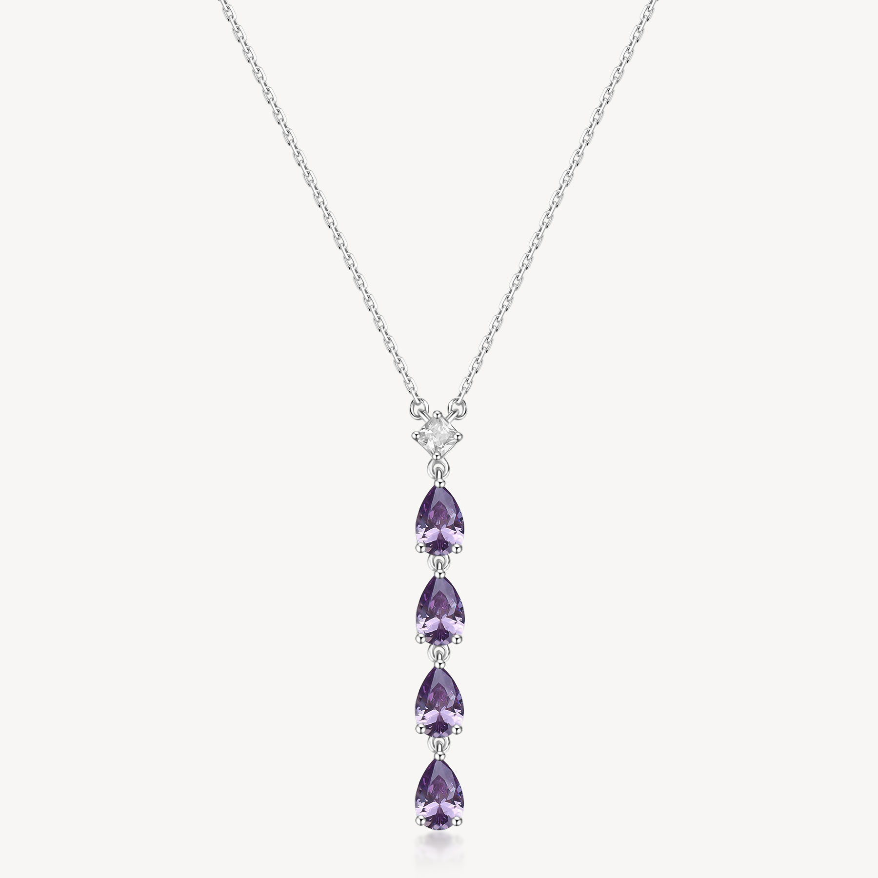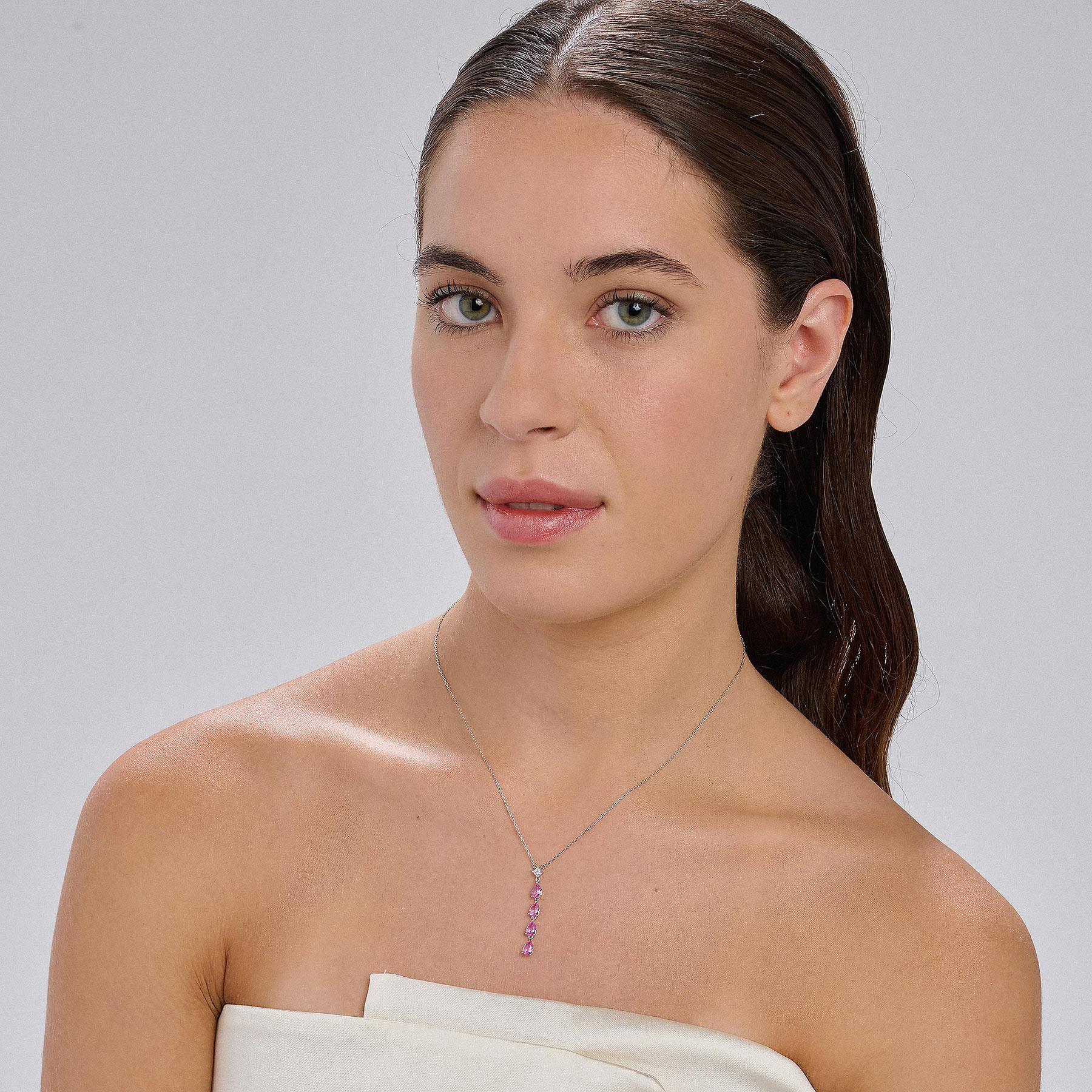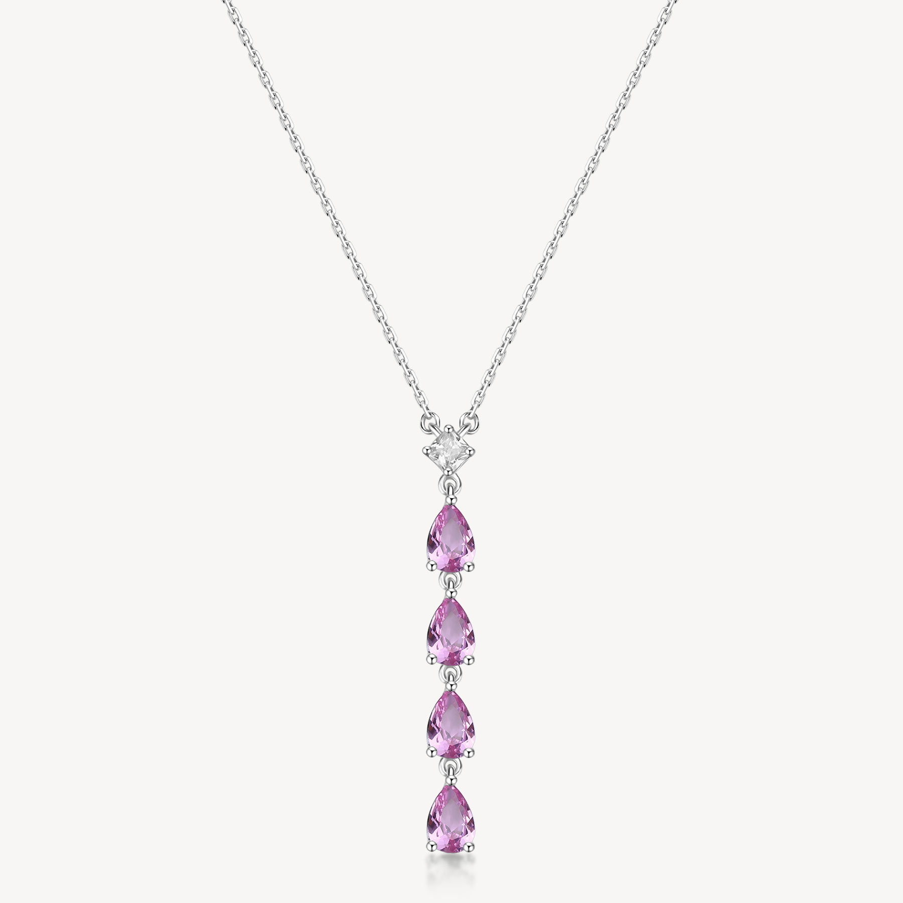 Collar de gargantilla en plata rodiada 925‰ y colgante con square circonitas cúbicas transparentes y pear circonitas cúbicas color light ruby.