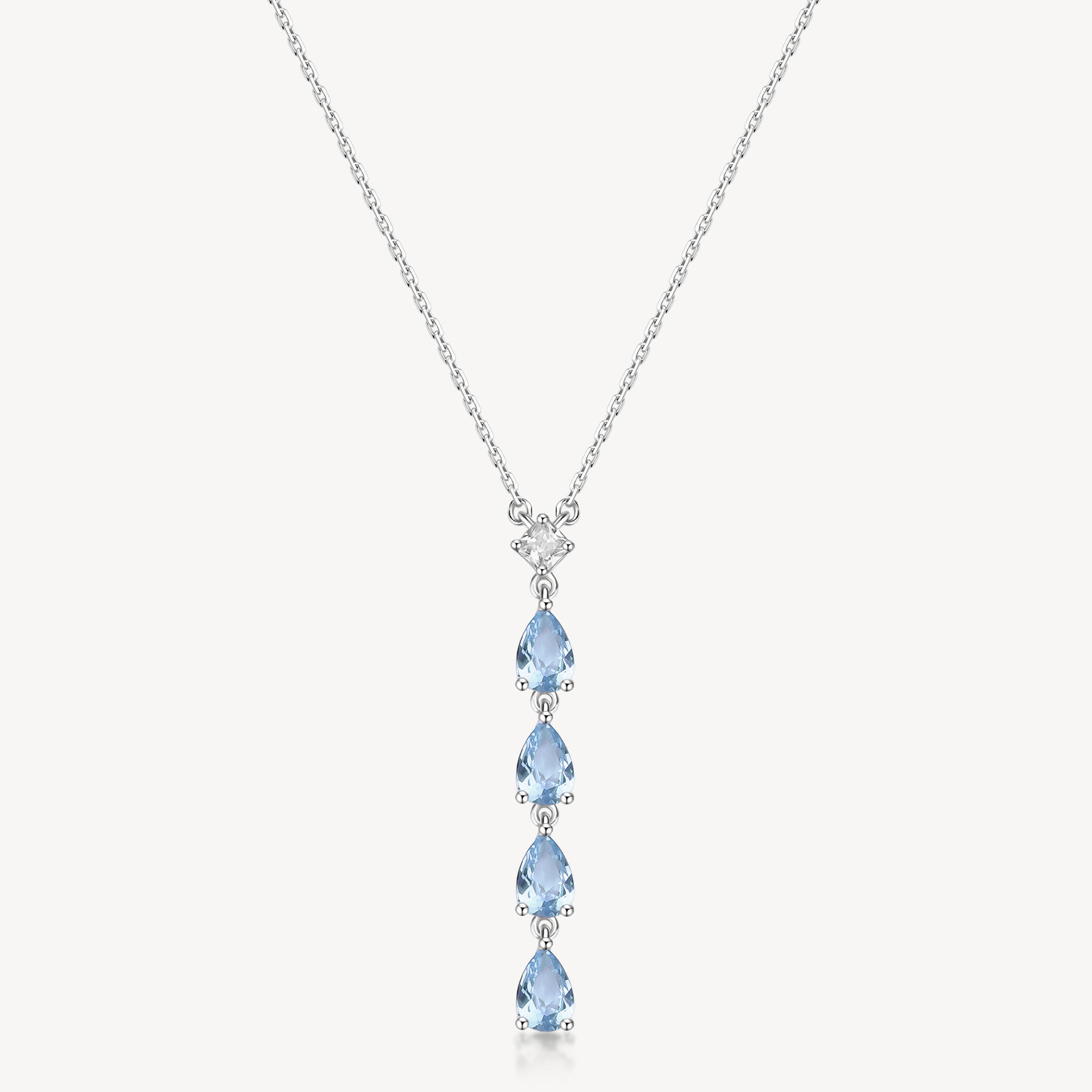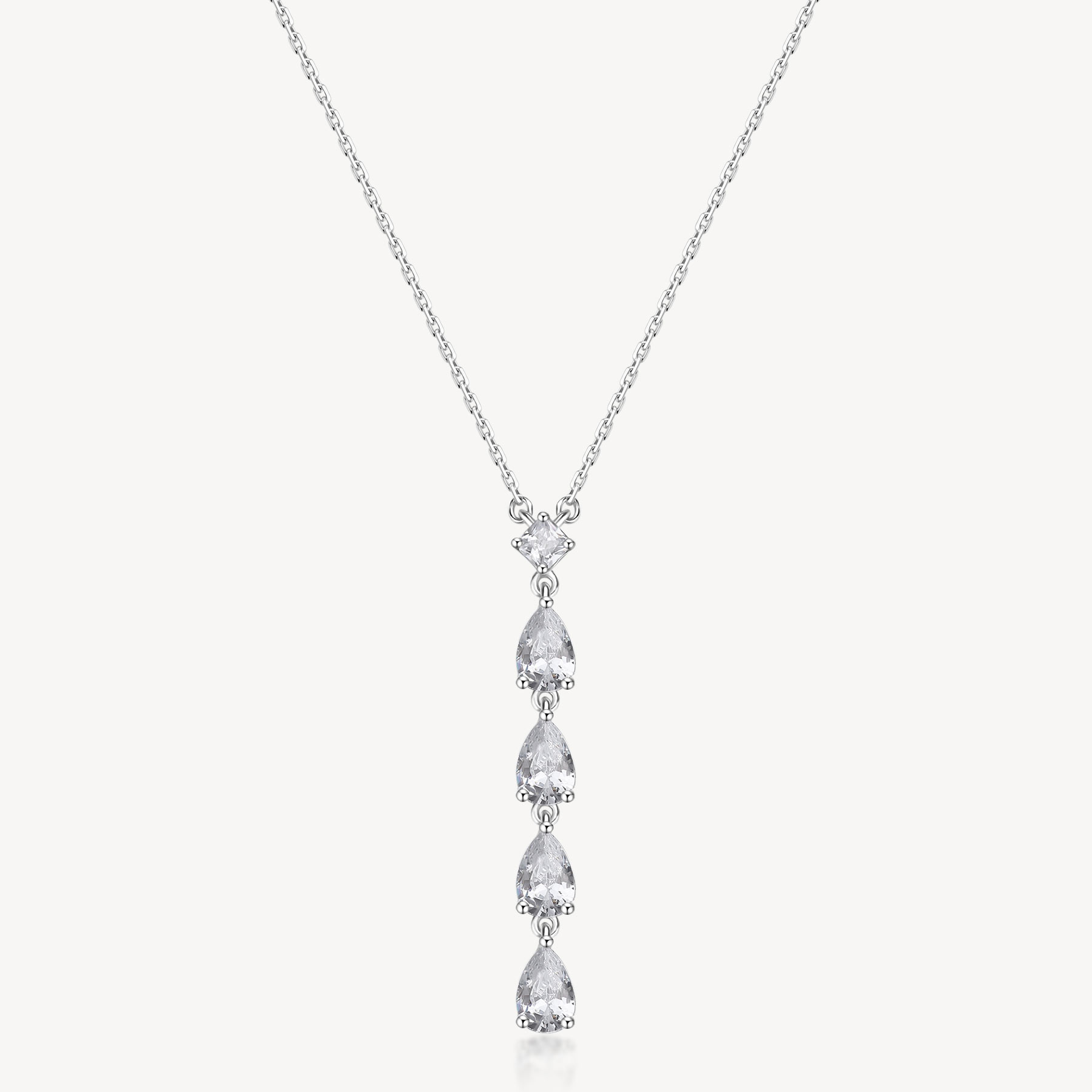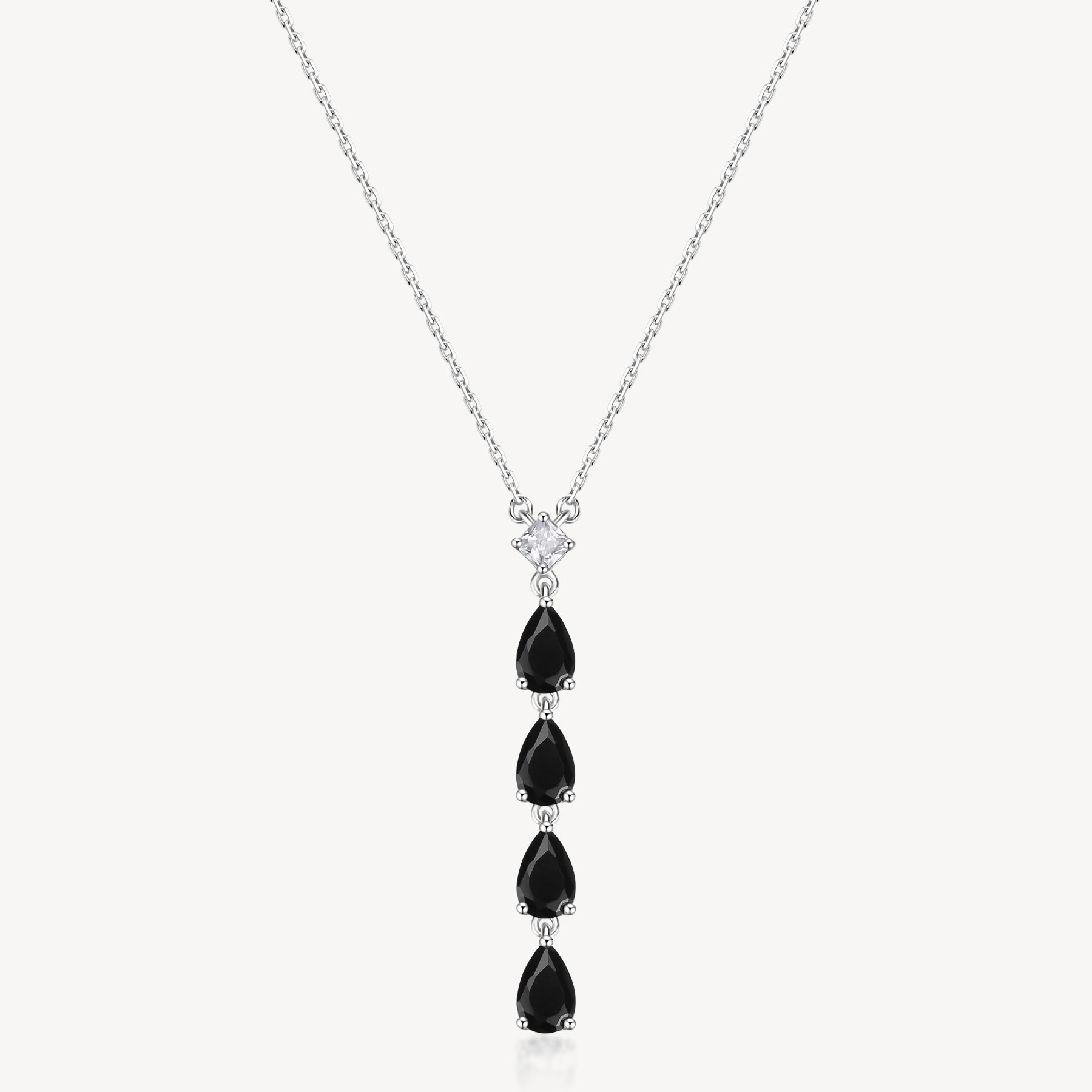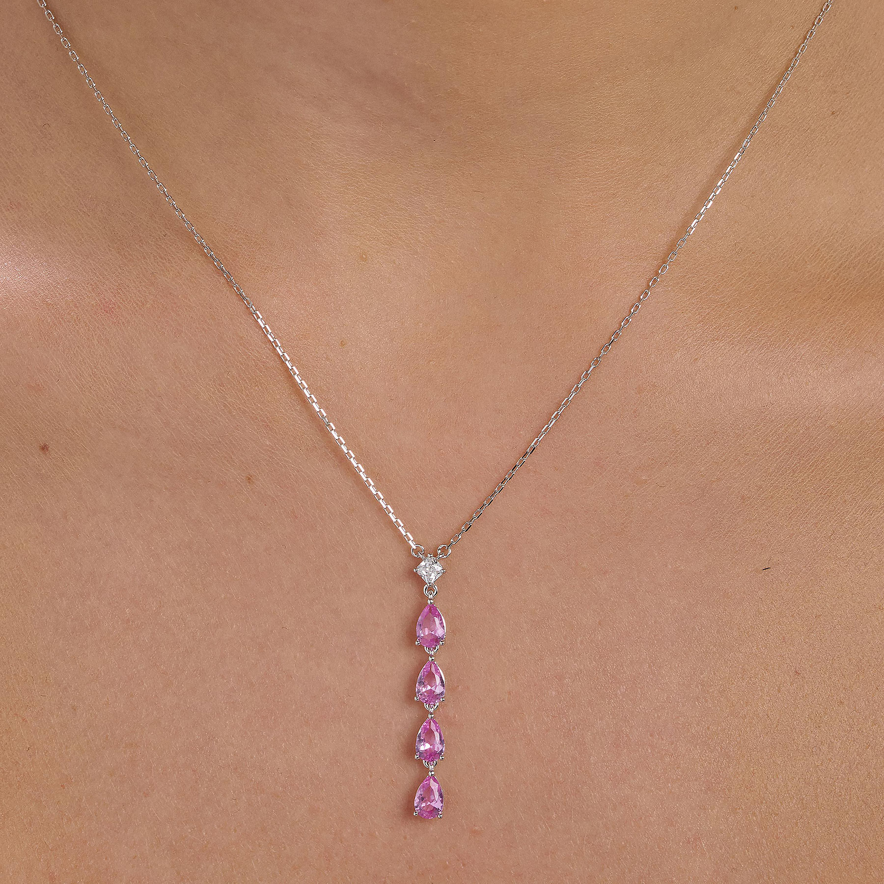 Collar de gargantilla en plata rodiada 925‰ y colgante con square circonitas cúbicas transparentes y pear circonitas cúbicas color light ruby.