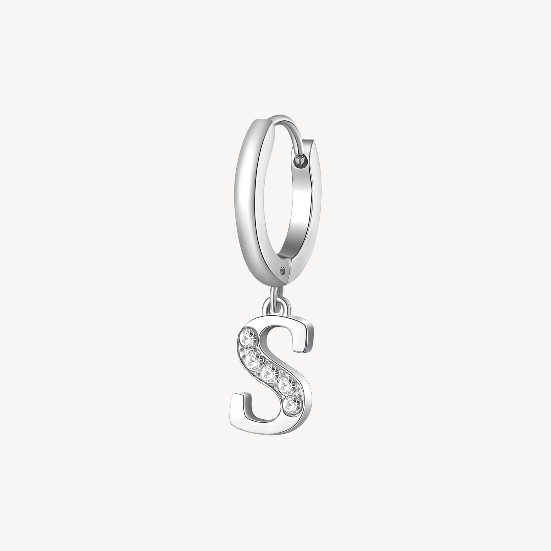 Pendiente individual de acero 316L con colgante de la letra S y cristales.