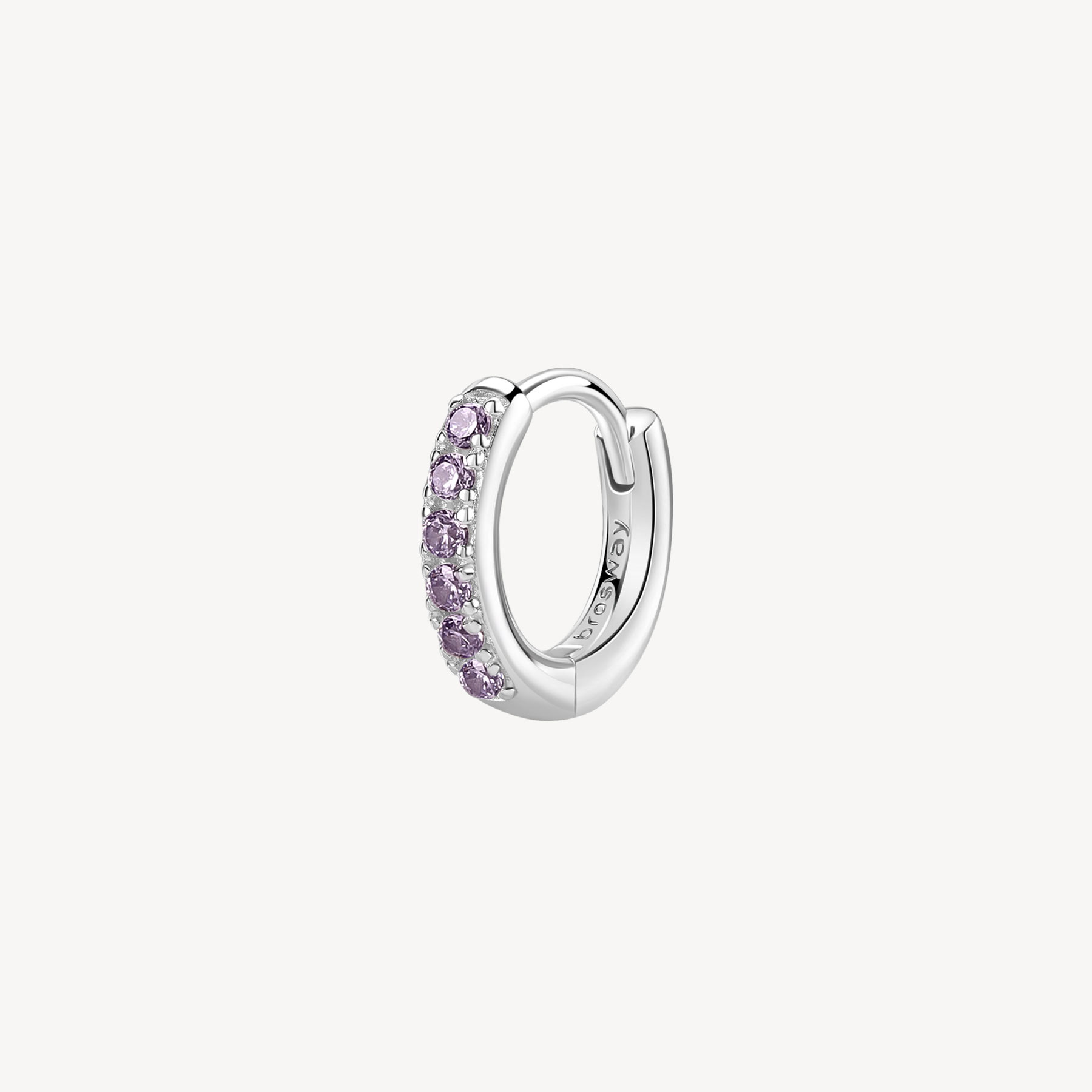Pendiente de aro individual en plata rodiada 925‰ con circonita cúbica color orange.
