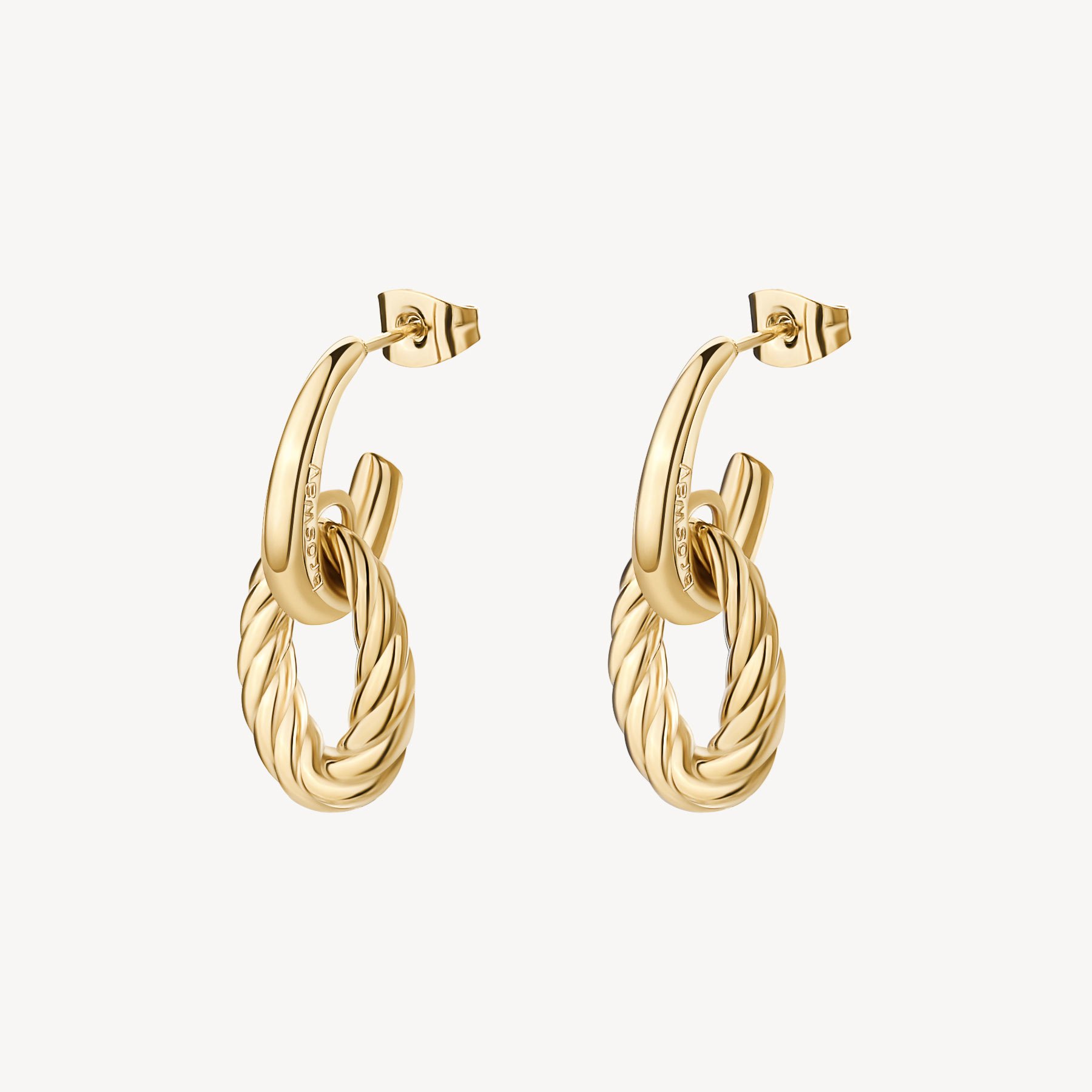 Pendientes colgantes de acero 316L con acabado en oro PVD 14K.