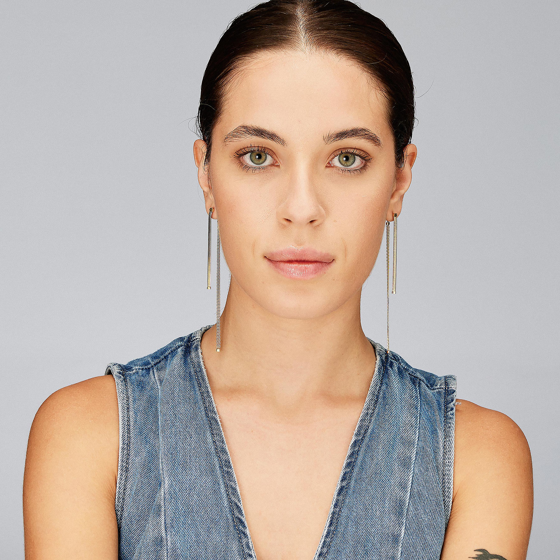 Pendientes largos colgantes de acero 316L con acabado pvd de oro 14K.