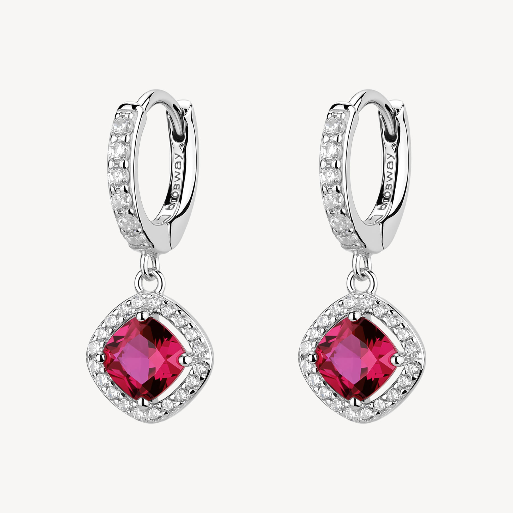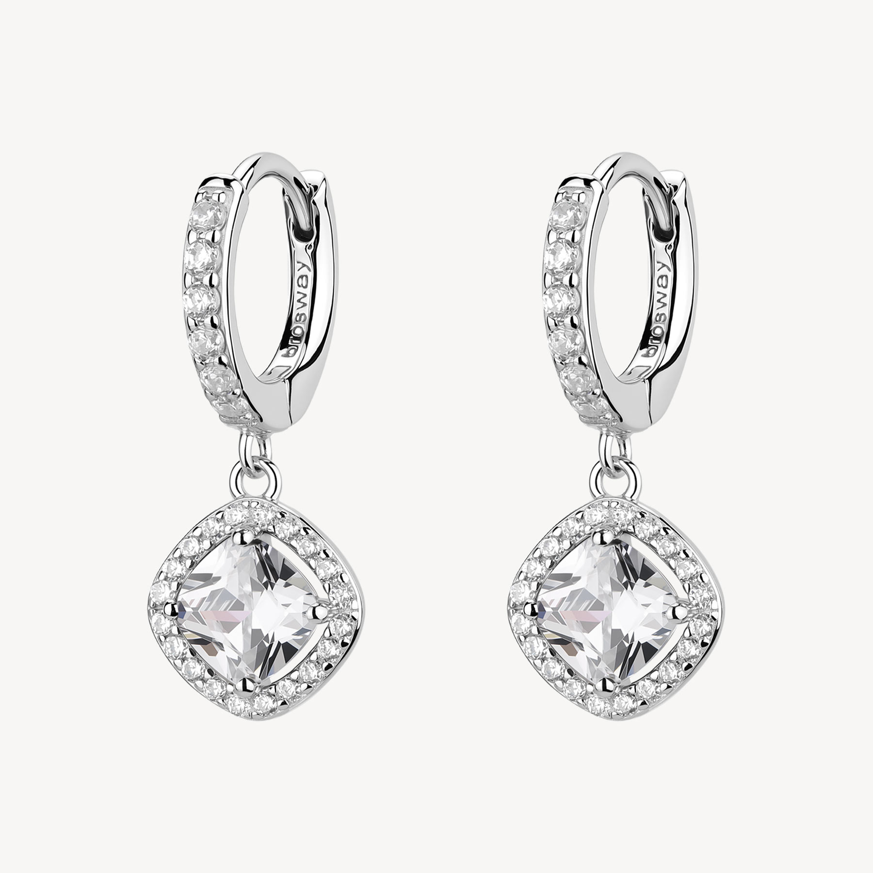 Pendientes de aro en plata rodiada 925‰ y colgantes con circonita cúbica.