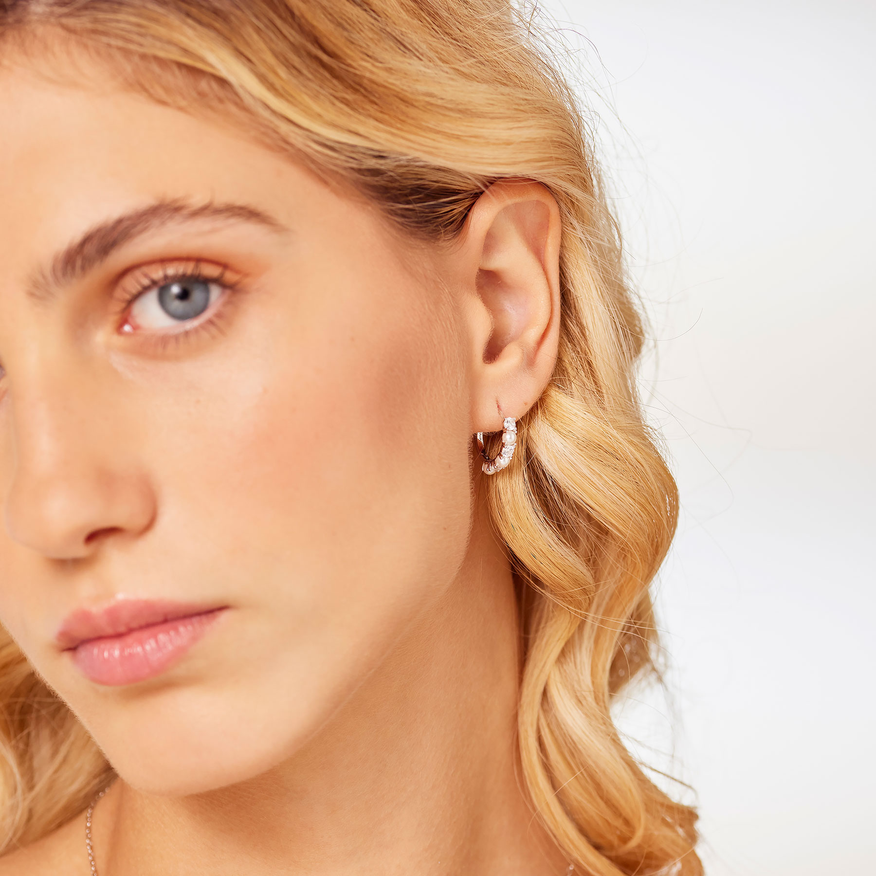 Pendientes de aro en plata rodiada 925‰ con perlas de concha y zirconia cúbica.
