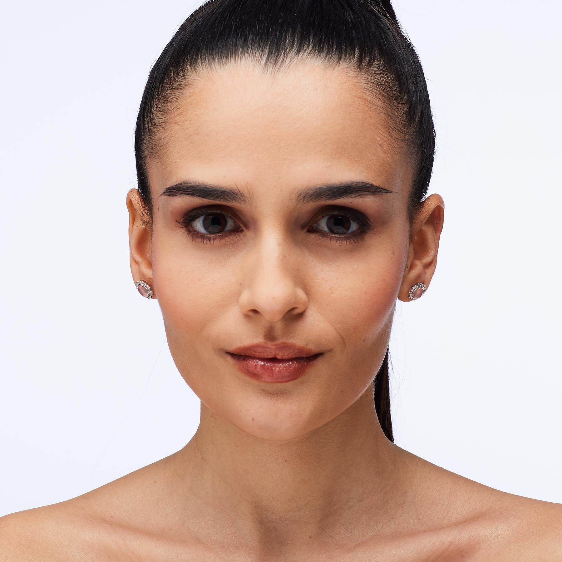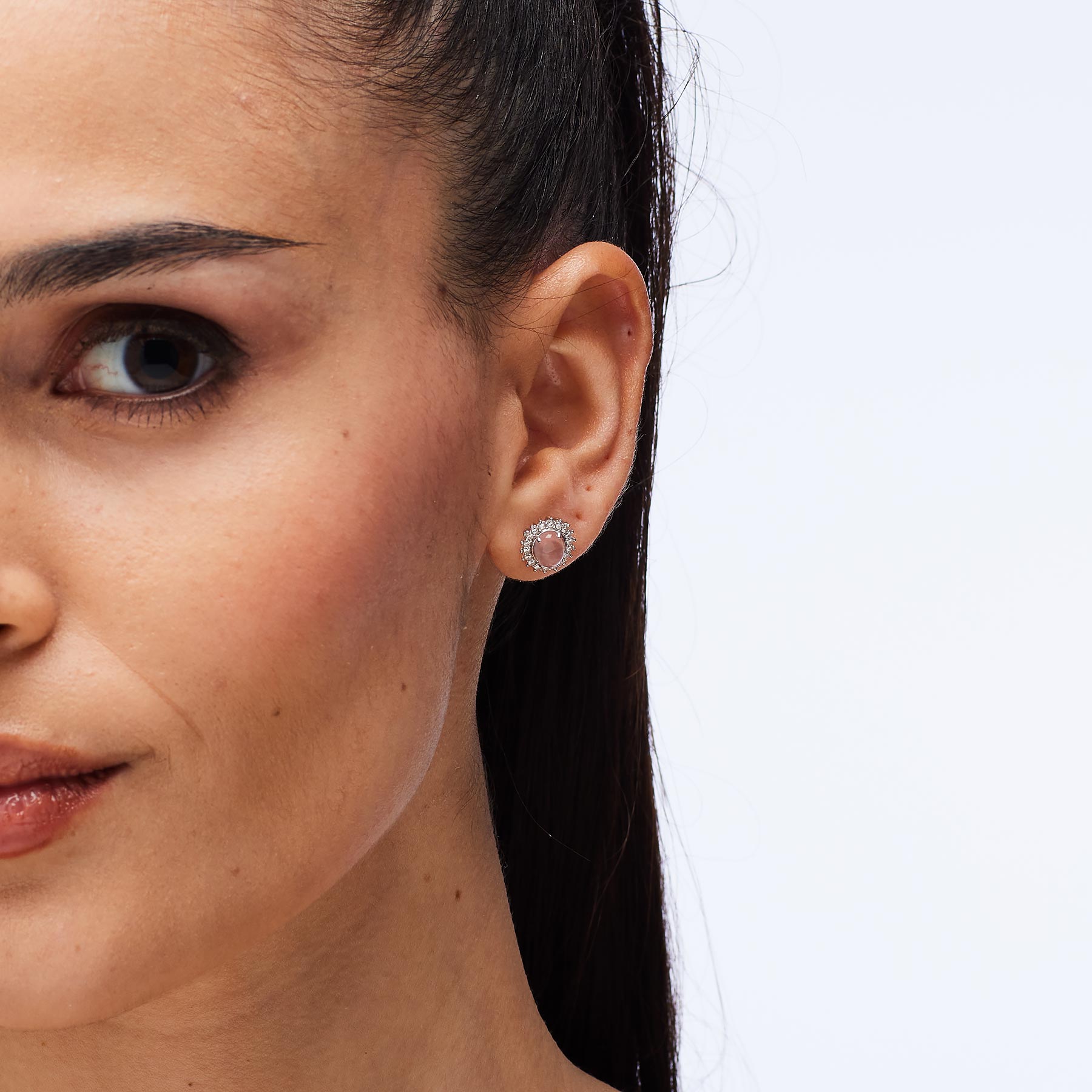 Pendientes de botón Kate en plata rodiada 925‰ con cuarzo rosa y circonitas cúbicas.