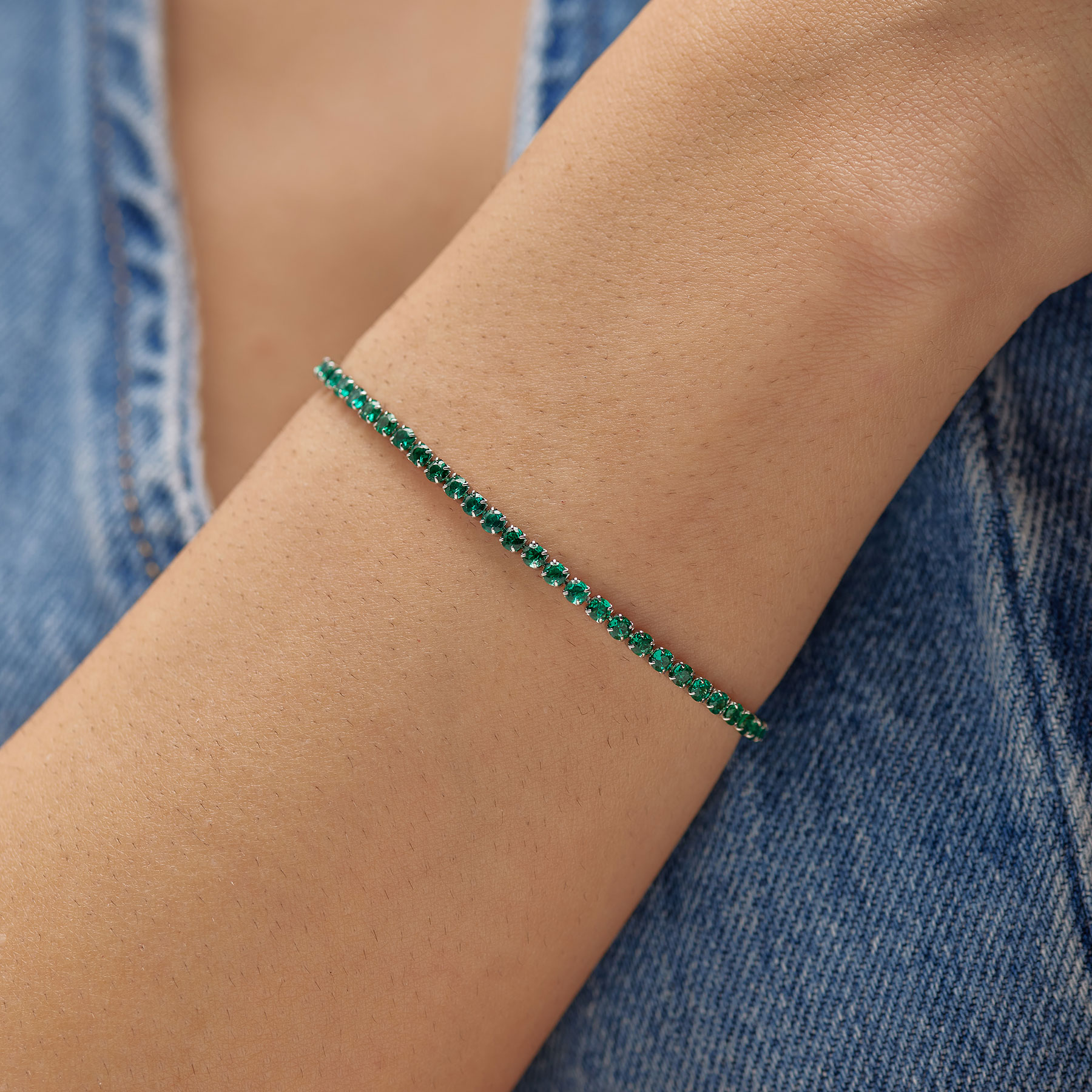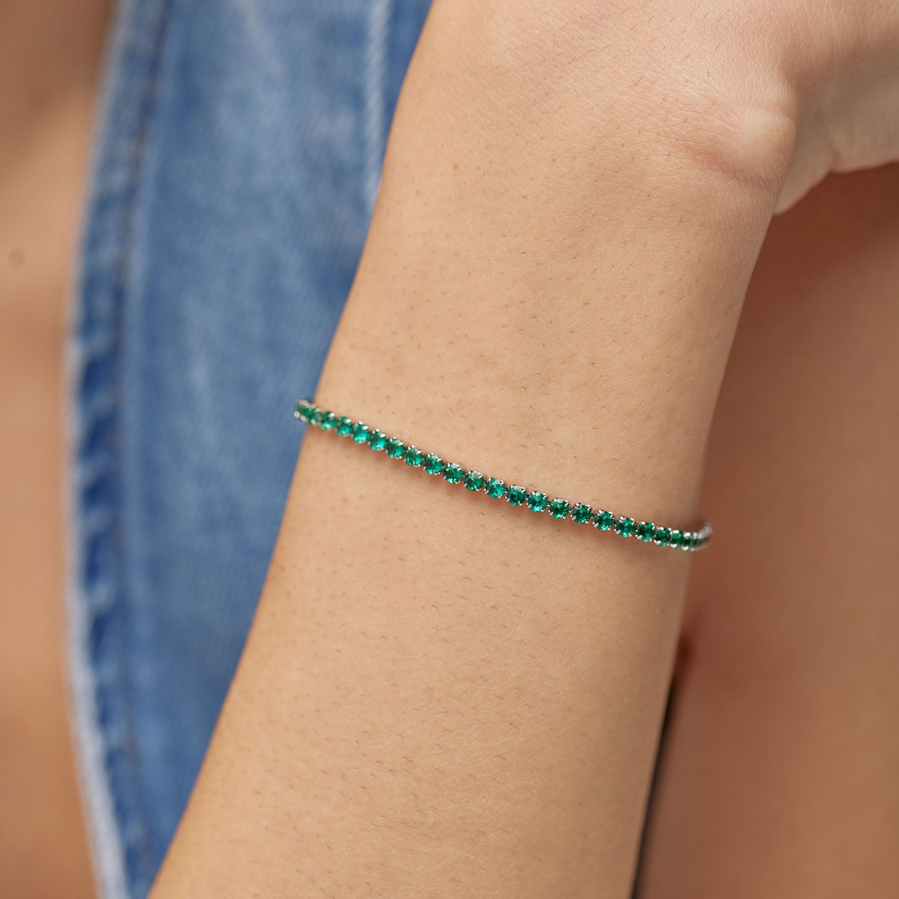 Pulsera de tenis en acero 316L con zirconia cúbica color esmeralda.