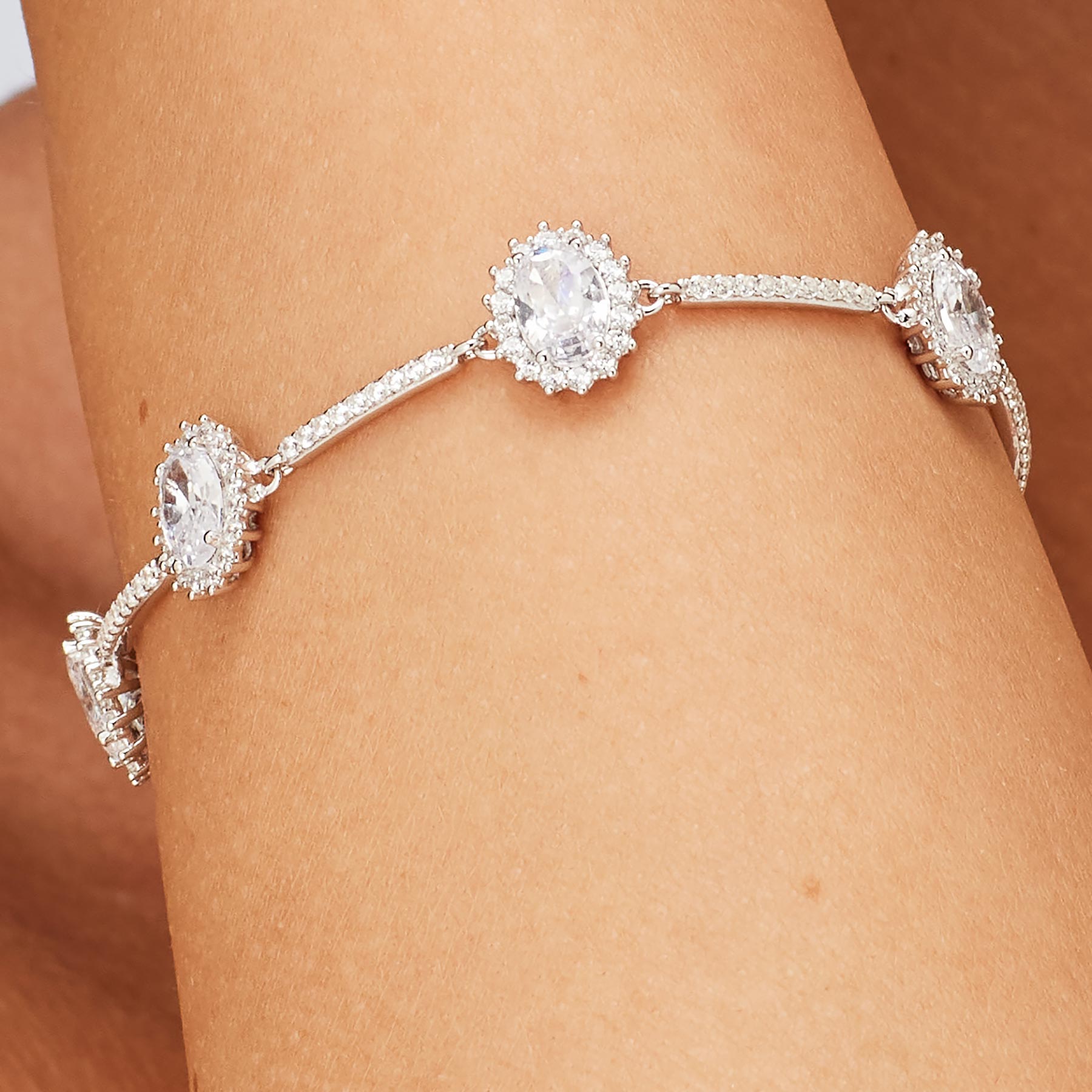 Pulsera Kate semirrígida de plata rodinada 925‰ con circonita cúbica ovalada.