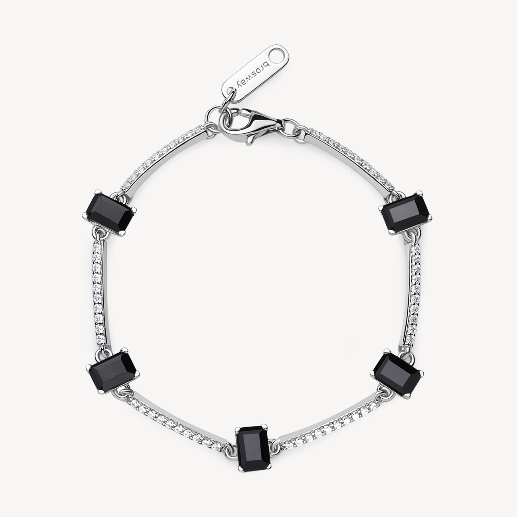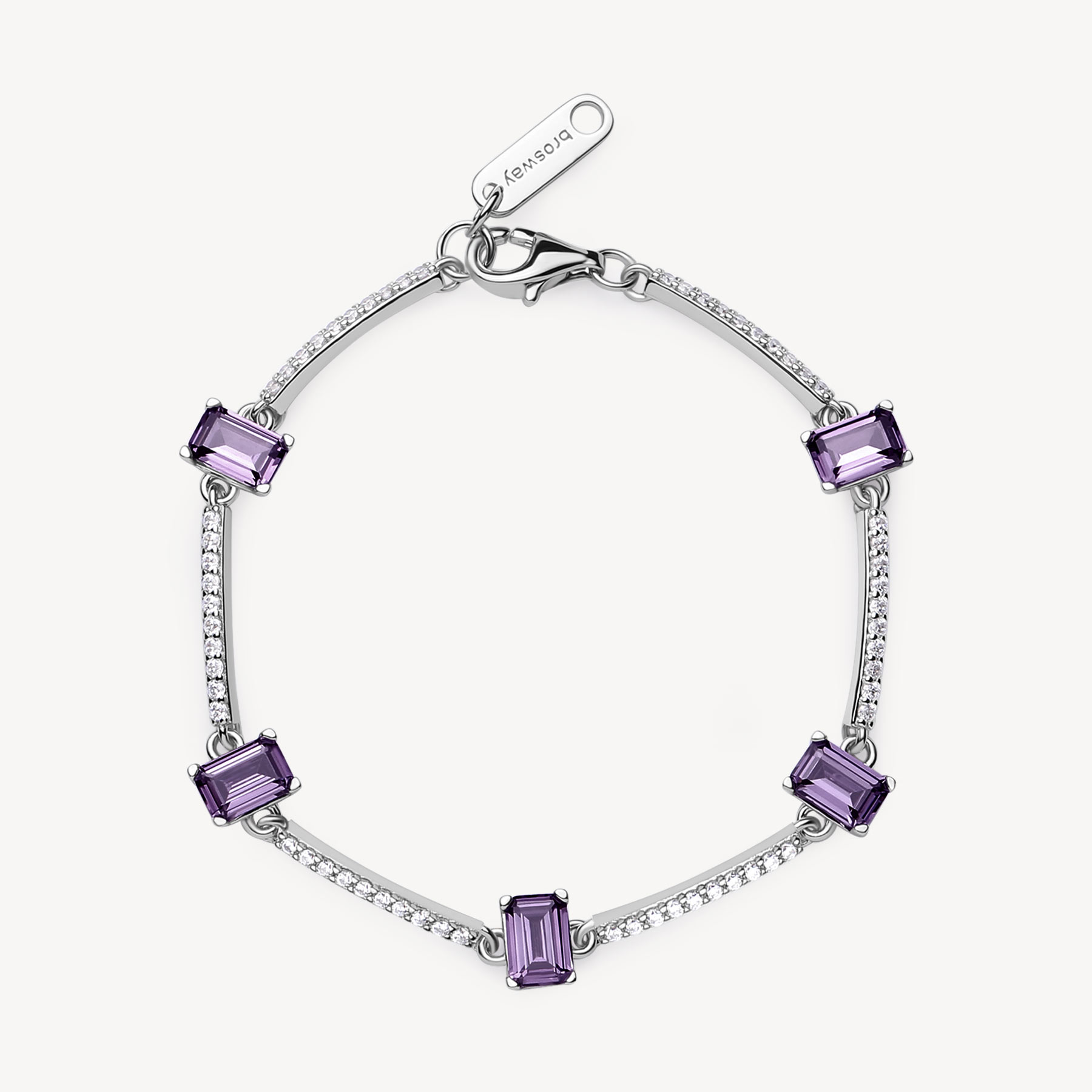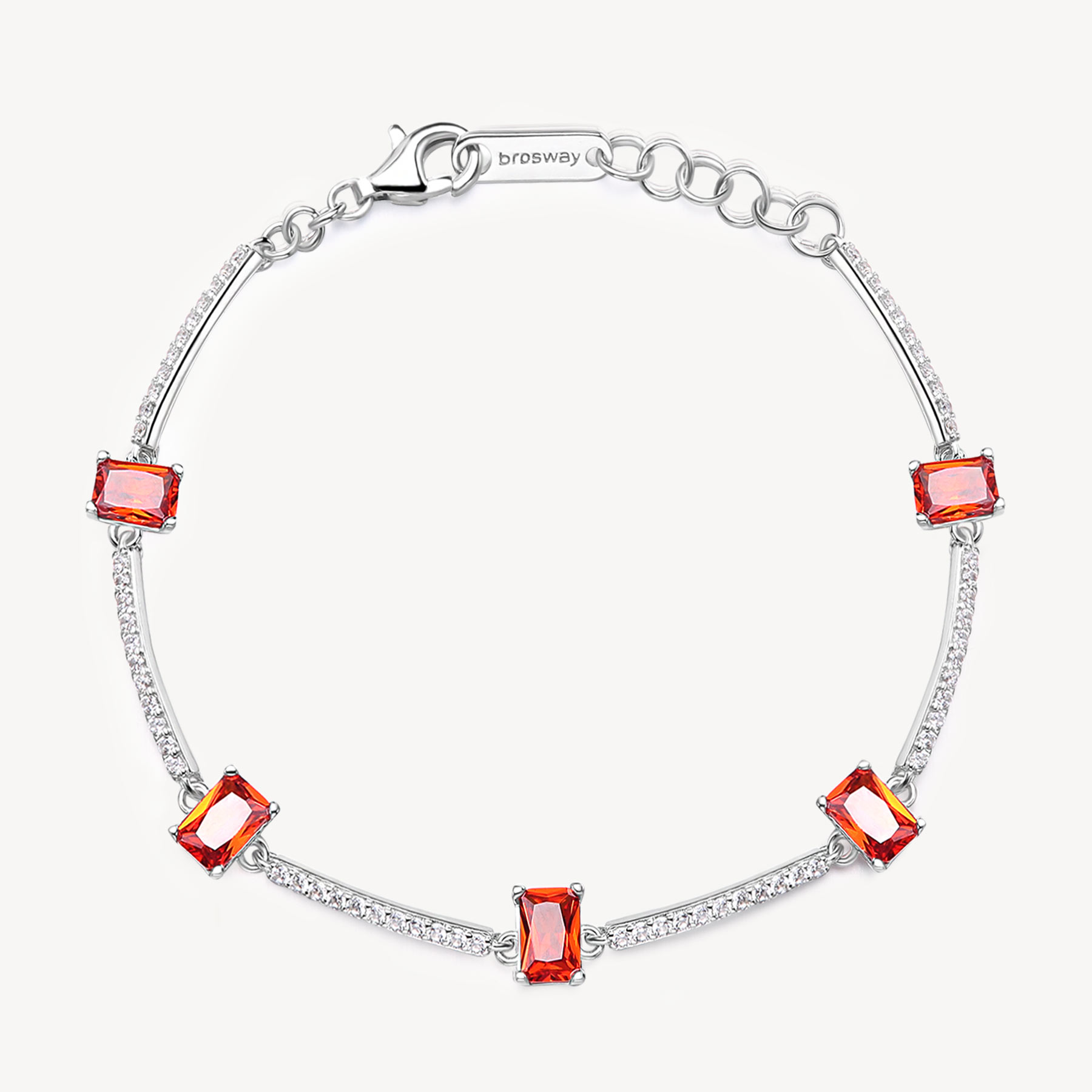 Pulsera semirrígida en plata rodiada 925‰ con circonita cúbica transparentes y baguette circonita cúbica color ruby.