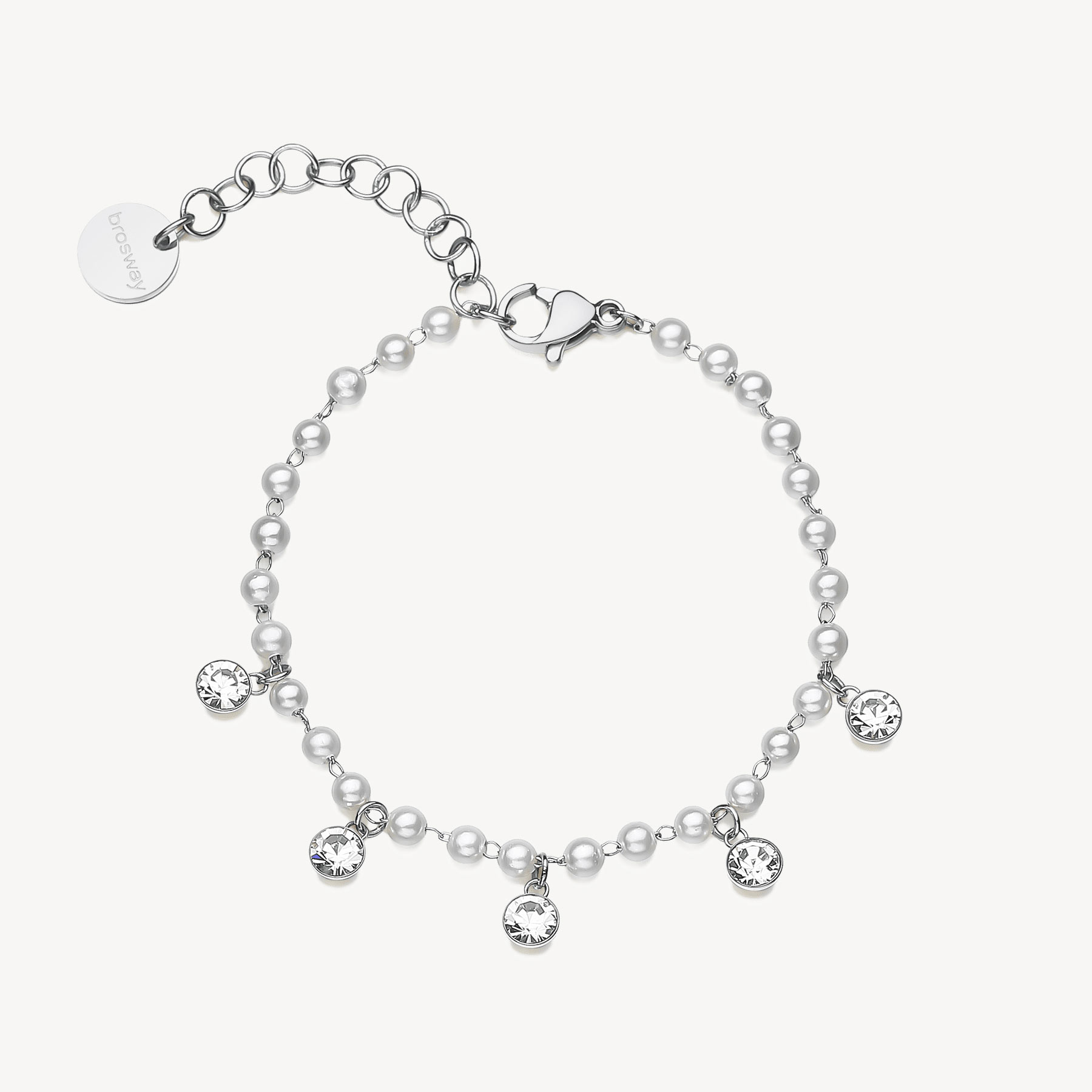 Bracciale in acciaio 316L con cristalli e perle di conchiglia.
