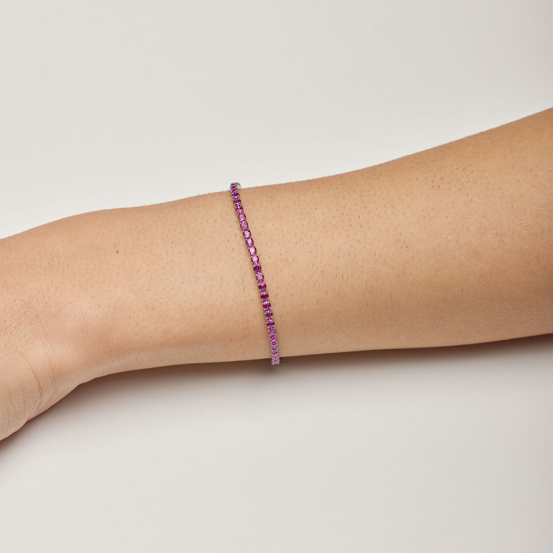 Bracciale tennis in acciaio 316L con cubic zirconia colore ruby.