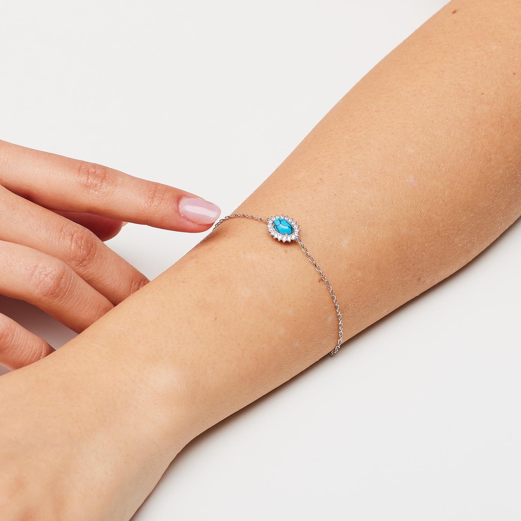 Bracciale Kate in argento rodiato 925‰ con turchese ricostruito e cubic zirconia.