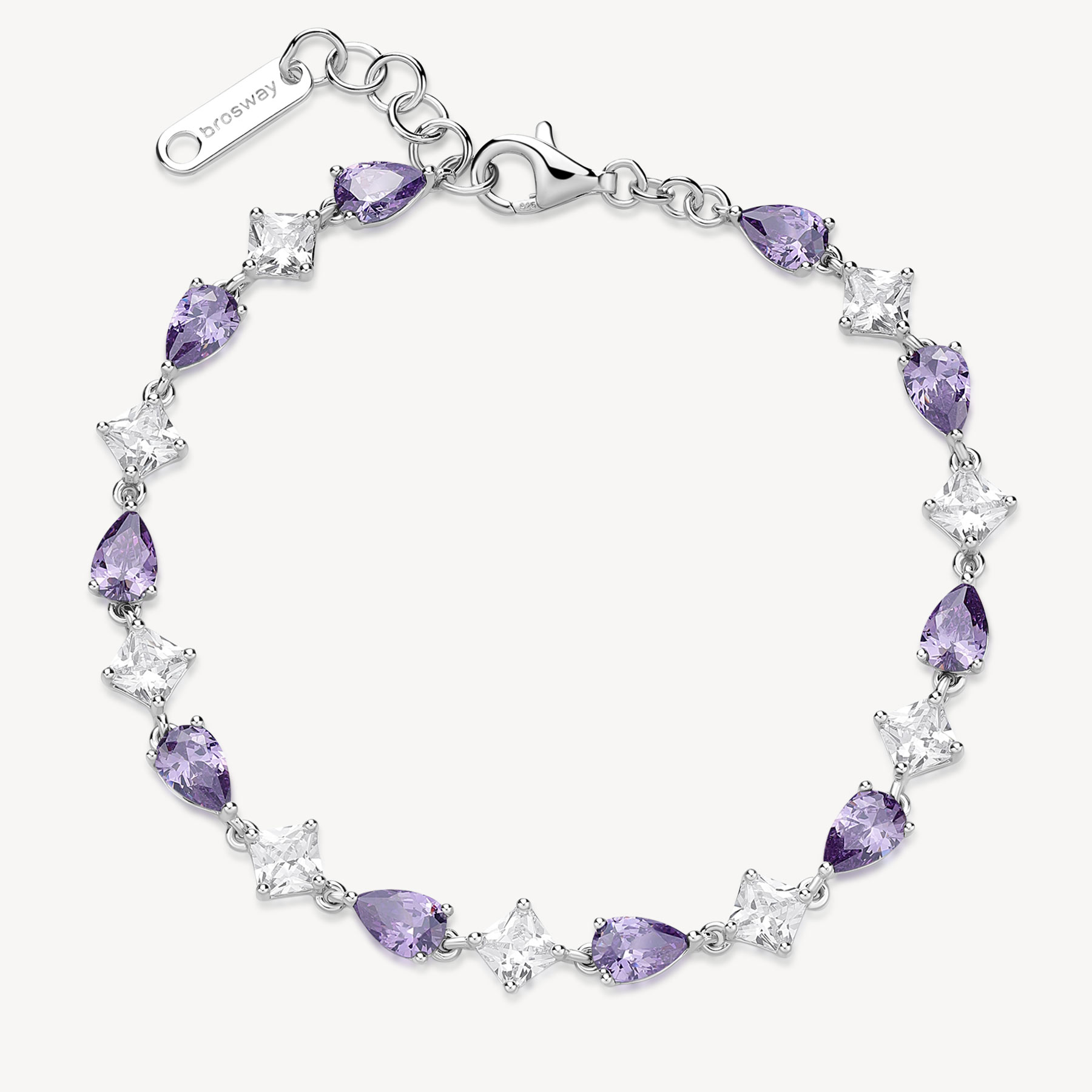 Bracciale in argento rodiato 925‰ con square e pear cubic zirconia.