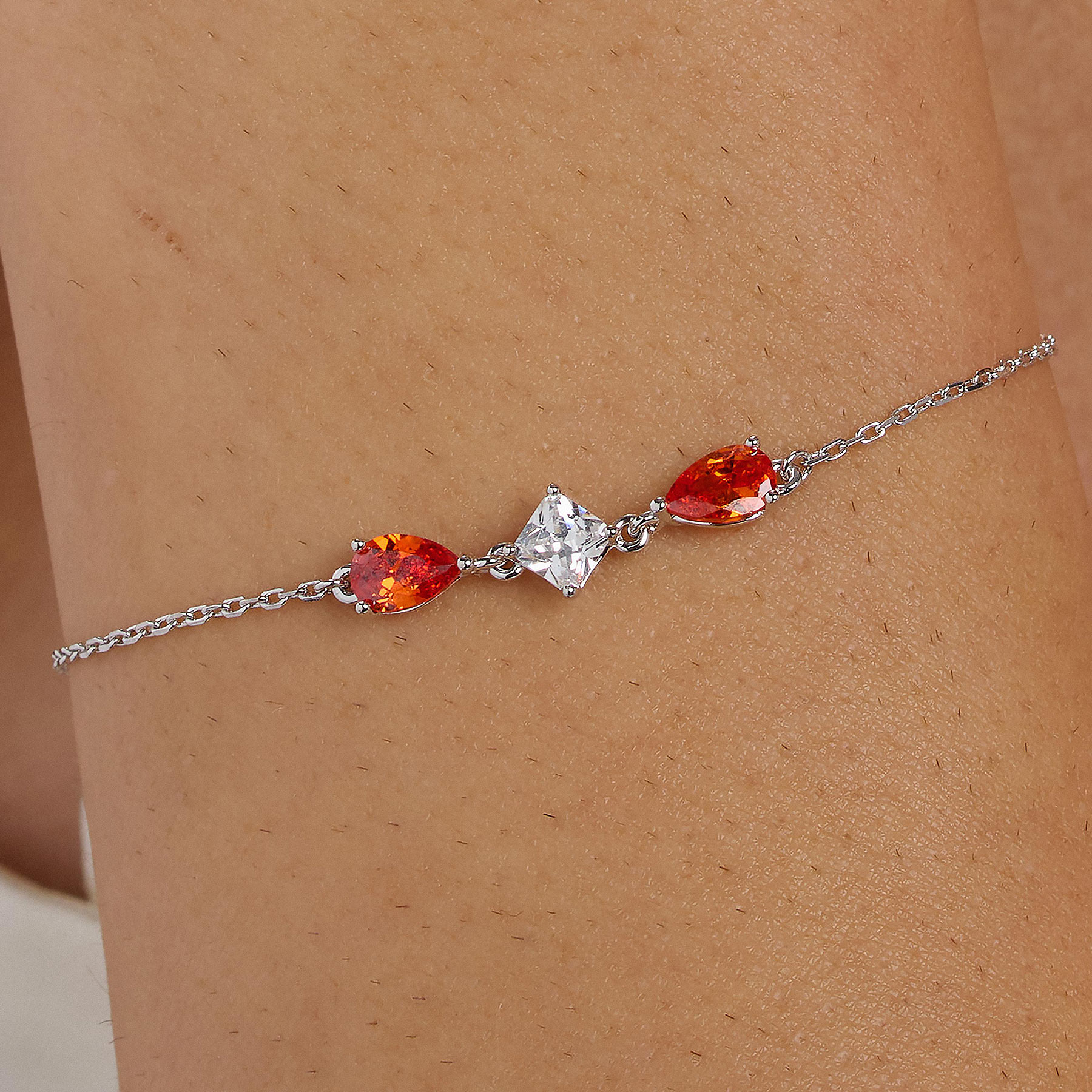 Bracciale tiralaccio in argento rodiato 925‰ con square cubic zirconia e pear cubic zirconia colore orange.
