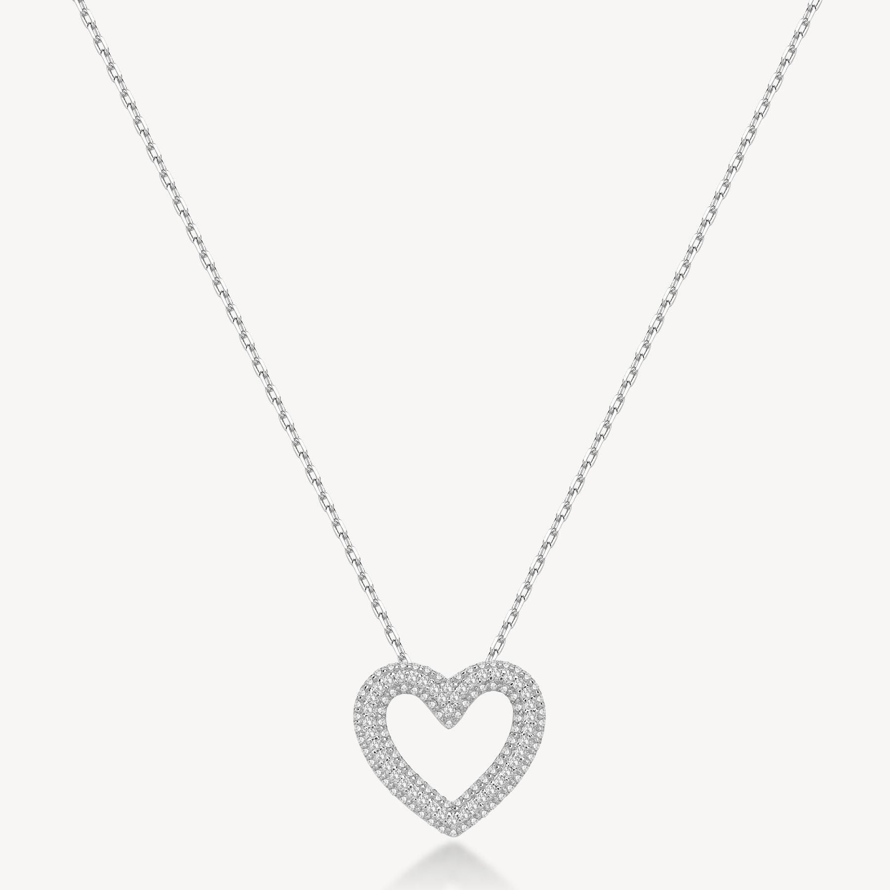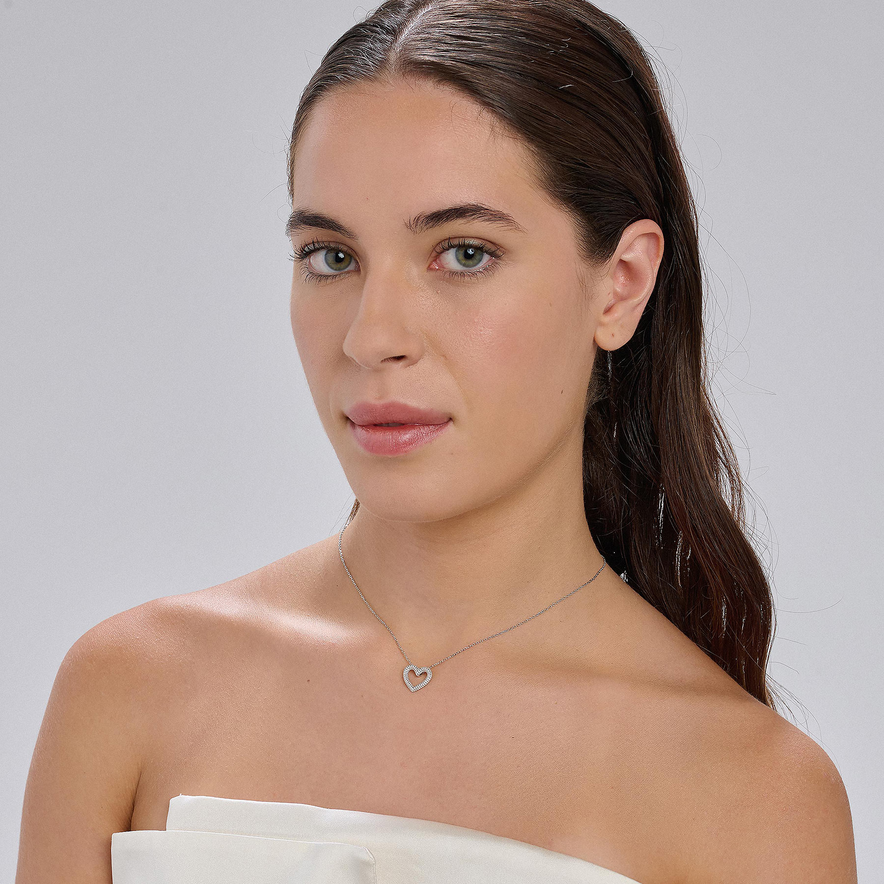 Collana girocollo in argento rodiato 925‰ con pendente a forma di cuore e cubic zirconia.