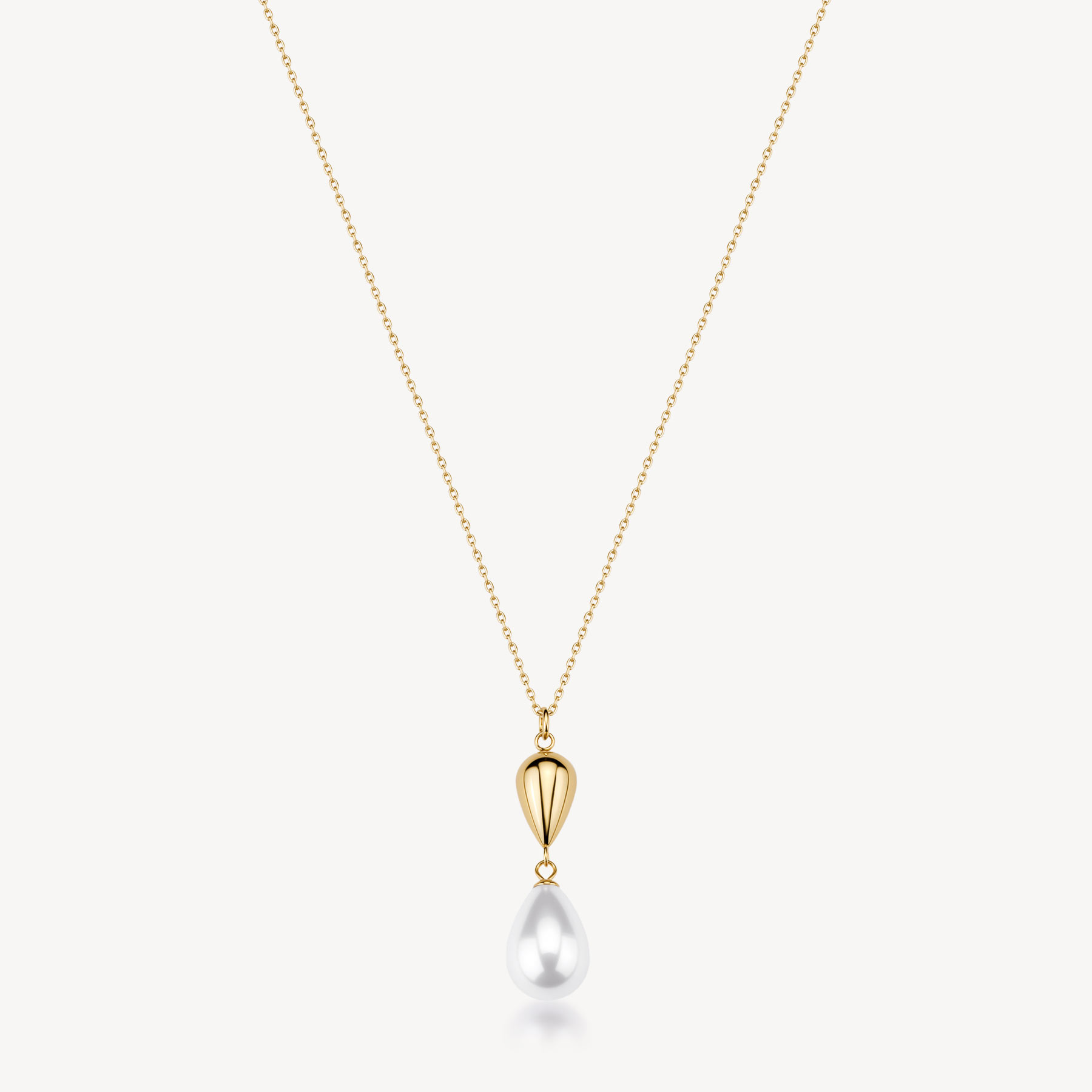 Collana girocollo in acciaio 316L e finitura pvd oro 14K, con perla di conchiglia e pendente a goccia.
