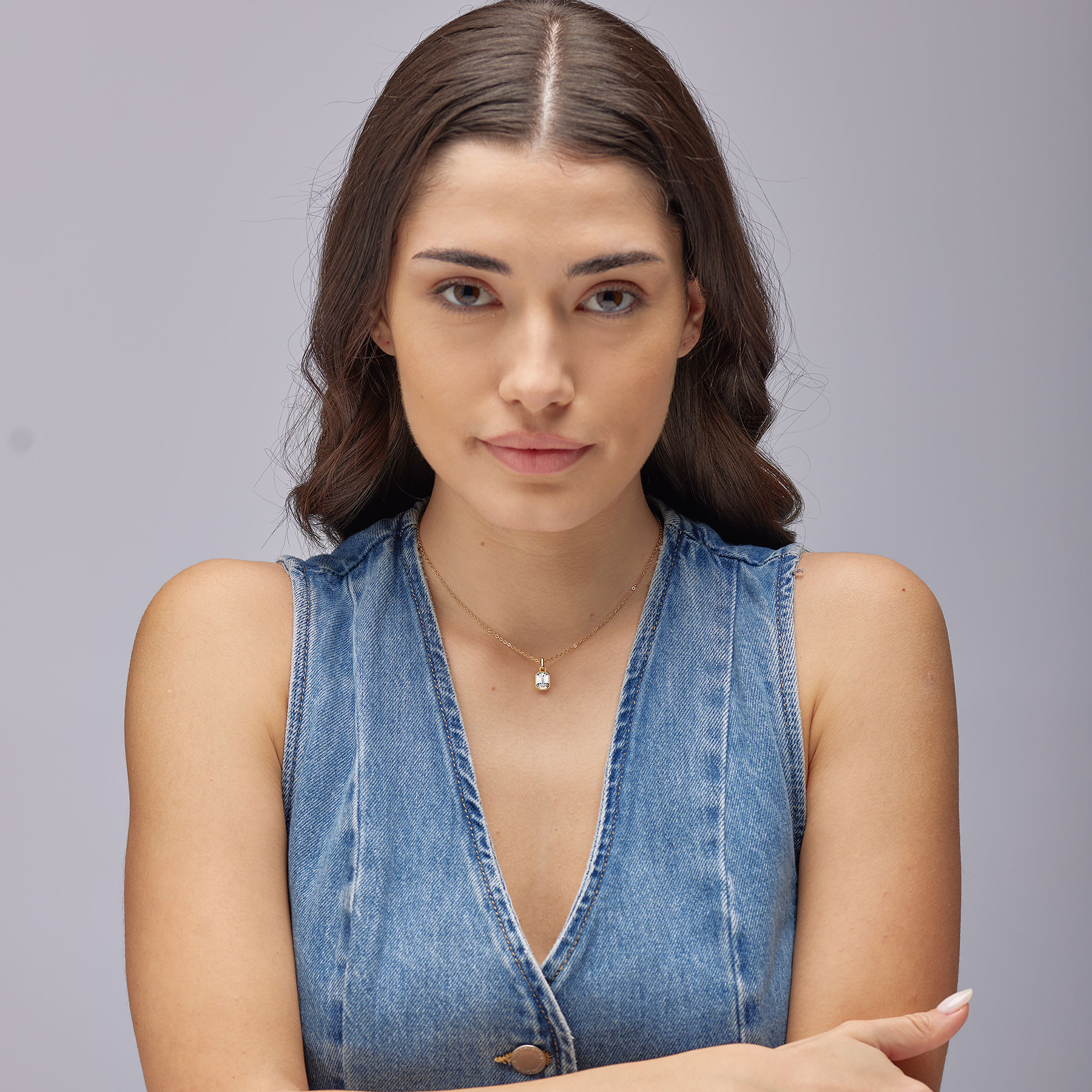 Collana girocollo in acciaio 316L, finitura pvd oro 14K e pendente con cristallo.